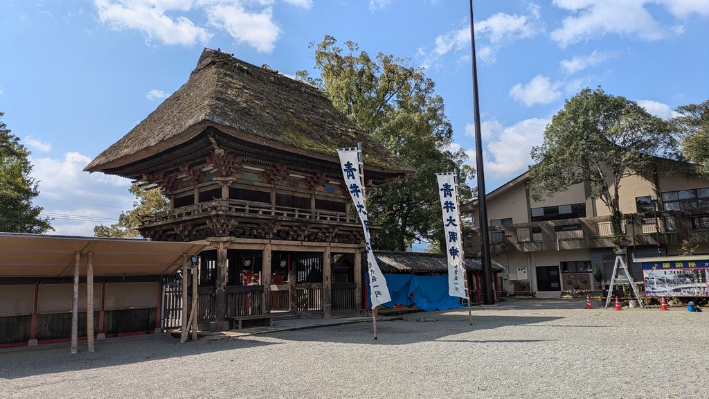 さて、次は蒼井阿蘇神社です。こちらは茅葺きの屋根が特徴で国宝指定を受けている神社です。