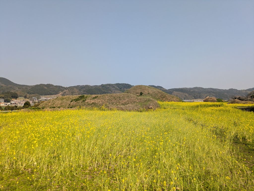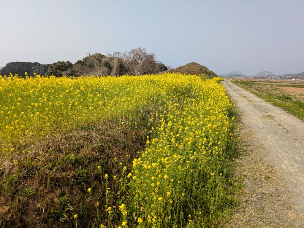 菜の花と古墳。なんだか遠い昔の風景のような感じがしますね。