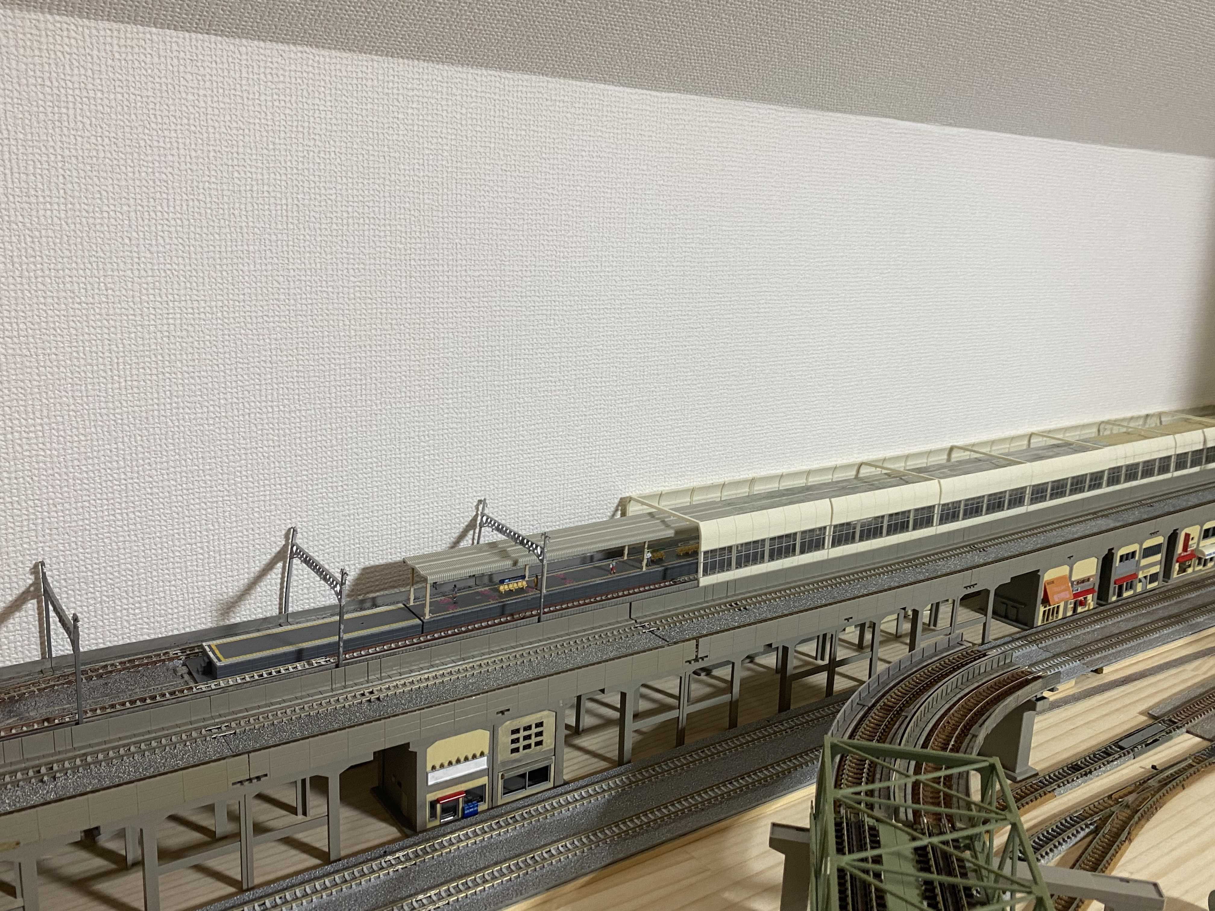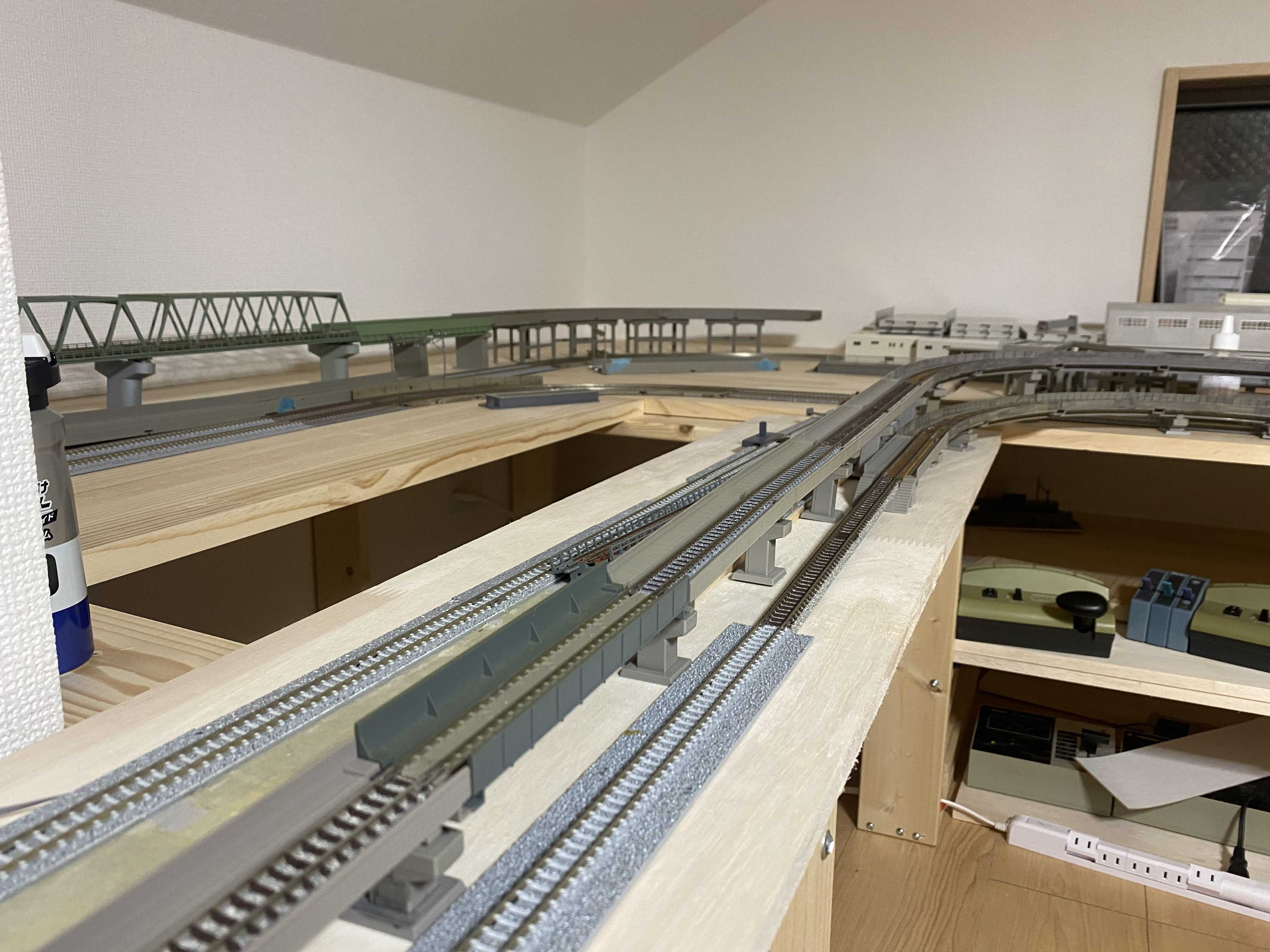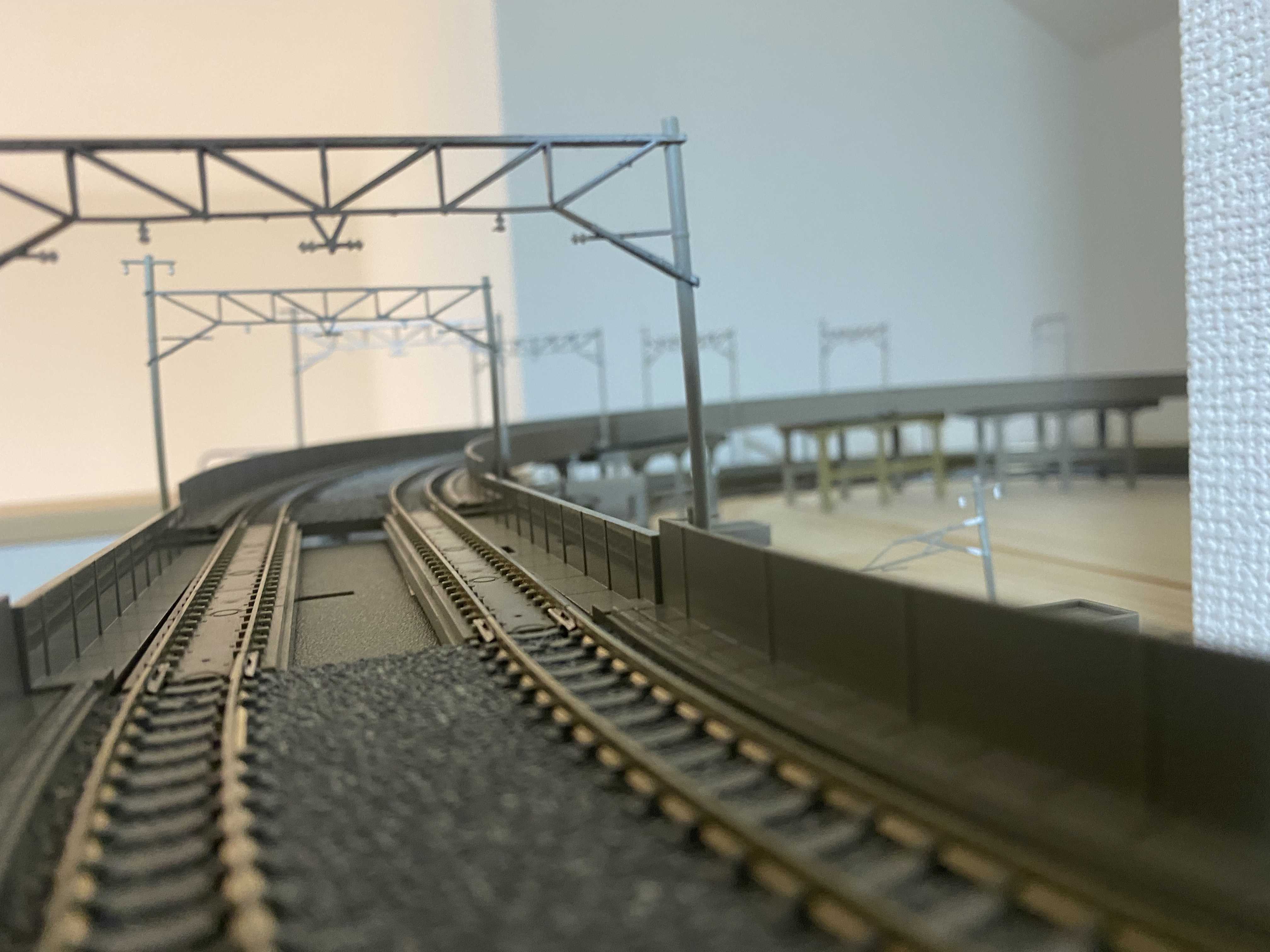 いざレールを並べるとレールだらけで道路や建物が置かなかったり、ミニ四駆のコースみたいに見えてしまうのが嫌なので、また配線変更を考えたいと思います。