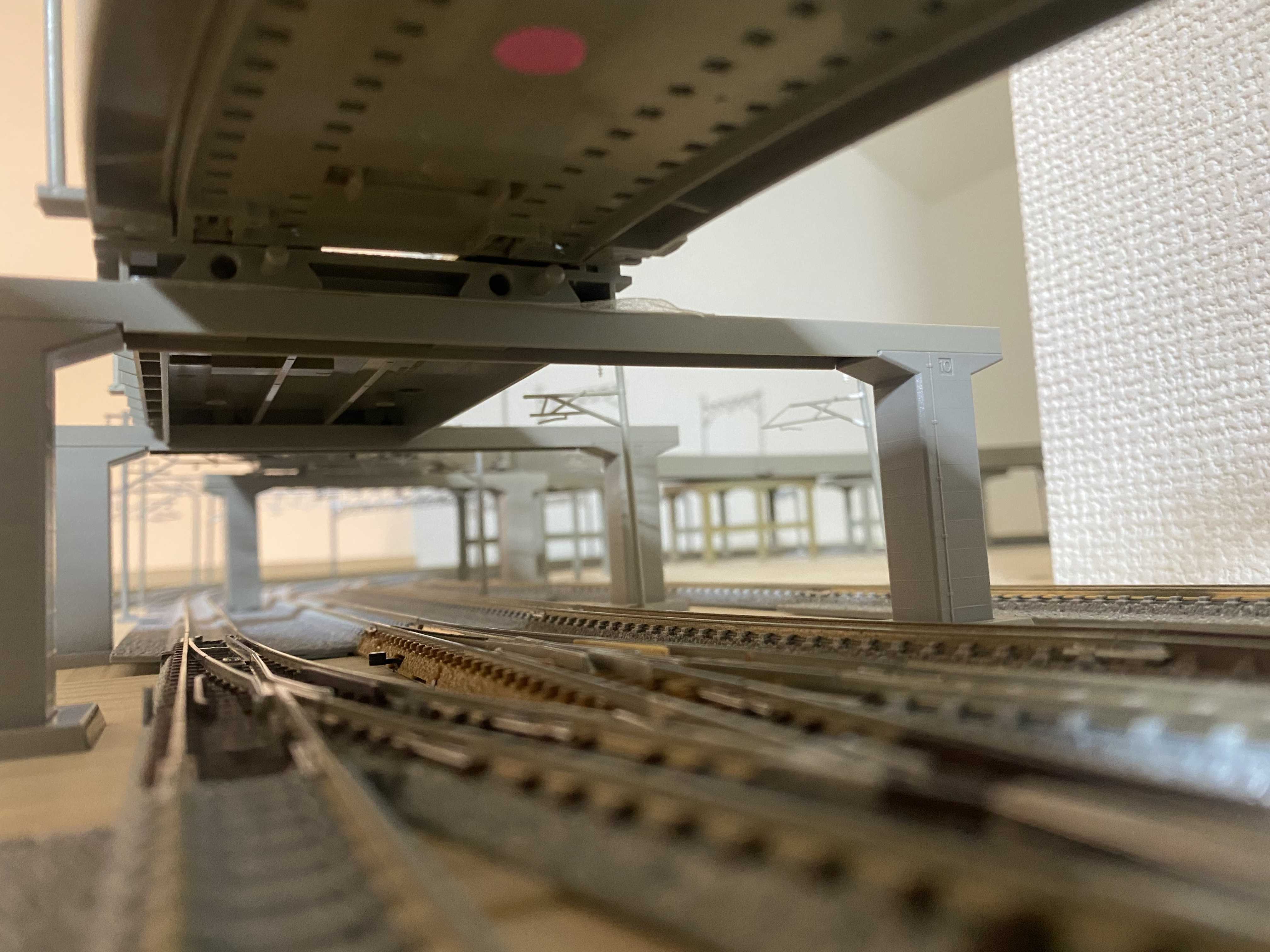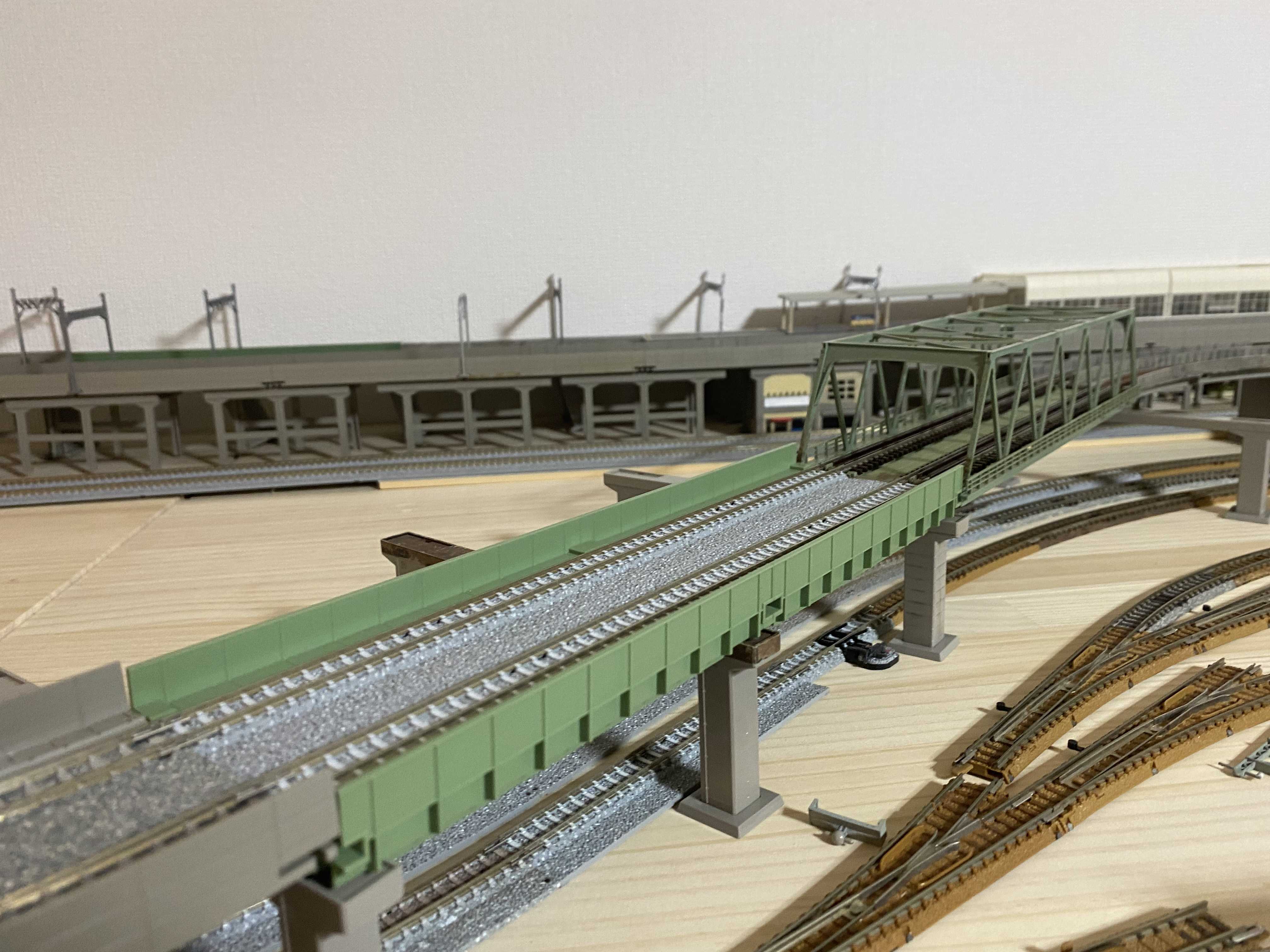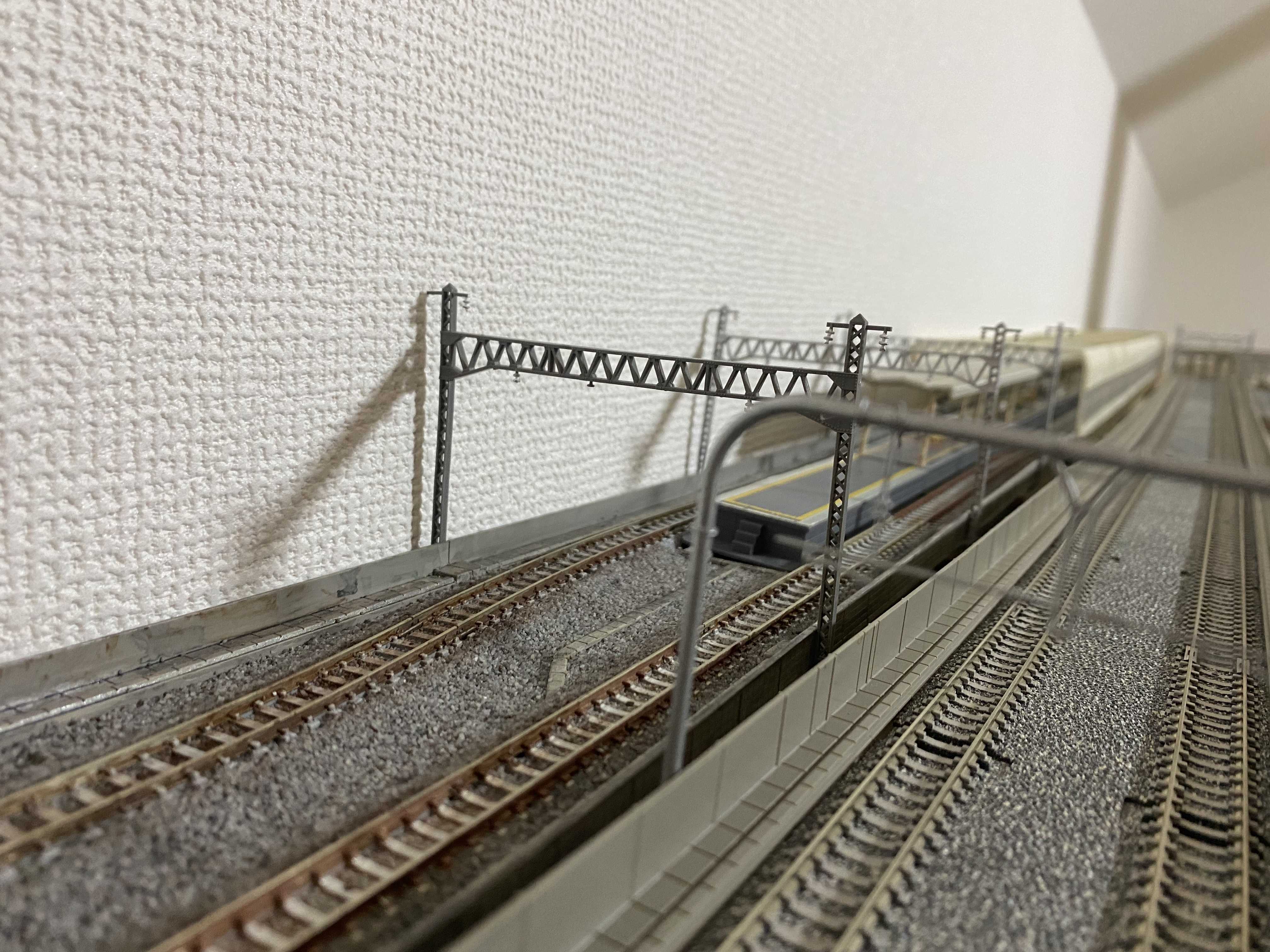 いざレールを並べるとレールだらけで道路や建物が置かなかったり、ミニ四駆のコースみたいに見えてしまうのが嫌なので、また配線変更を考えたいと思います。