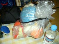 昨日の新潟県中越沖地震から、一夜が明けた。 昨晩は情緒不安定だった息子。 「かあ(さん)、揺れるかなぁ…?」などなど言いながら、枕元に懐中電灯・自転車用ヘルメットを用意する。 そして息子の情緒不安定時の典型的不定愁訴である、「お膝イタイ」をしきりに訴えて。。 私はシップ貼ったり、膝をなでたり、手をつないだり…して。 それでようやく、息子は寝付いたのだった。 その後はもう、親子してグッスリ。 さすがに昨日は、お互い気疲れしたもんねぇ・・・(ー∇ー;) で、今朝。 登校前の息子が、心配していた。 「かあ、地震あったら、くじぃたちつれて逃げてやってね」 "くじぃ"とは、息子の『弟』であるくじらのぬいぐるみ・"くじくじ"のこと。 しかも、最近はナゼか『弟』が増殖していて(ー∇ー;)、くじくじだけじゃなく、エリザベス@「銀魂」・ジャスタウェイ@「銀魂」・ステファン@「JR東日本・Suicaのキャラクターのペンギン」・そしてヒトカゲ@「ポケモン」…それだけ連れて逃げろ、というのだ。。(-_-;) おいおい、何で地震でぬいぐるみ5つ抱えて逃げなきゃならんのよ? そんなヒマがあったら、わが身だけで逃げるわ! それにかあは今日、お仕事だってばよ…。 「じゃあ、おばあ(80歳超えた、同居中の義父の姉)、お願い」 おいおいおい、余計難しいって。。(~_~;)…と突っ込み入れたところで、ナットクしない息子。 「かあは、オラの『弟』が地震でペッチャンコになってもいいの!?」 あのなぁ。。(^_^;) 困った私、 「わかったから、とりあえずあんたが持って逃げて欲しいもん、ひとつにまとめとき! できるだけ頑張って持って行ったるからさ」 あくまでも、"できるだけ"ね…とは、息子には言いませ~~~ん!(ーー;) その結果、息子がまとめたものを撮ったのが、この写真。 ぬいぐるみの『弟』たちを始め、黒いバッグは、ニンテンドーDSの入ったゲームバッグ。 昨日、シネコンから家に逃げ帰る(^_^;)際に買った、ペットボトルの水。 そして、おこづかいのはいった、青い丸い財布。。 息子よ、キミが選んだ非常グッズでは、サバイバルは難しそうだねぇ。。。↑本当は、こういうのですよね。。↑また、こういう本でお勉強しないと。。。人気blogランキングへ ↑宜しければ、クリックよろしくです^^