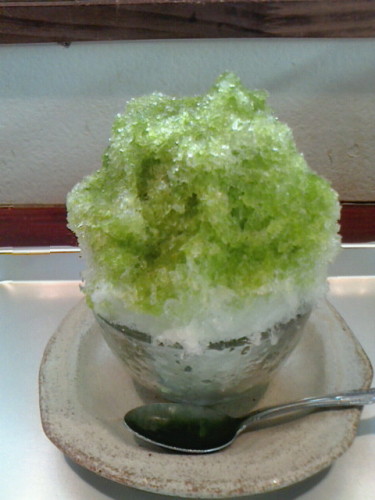 昨日は腰痛持ちになってしまった上に、天気も悪く。 いきなり降ってはやみ、また降る…っていう『ここはスコールか?』状態なので、うつうつと1日過ごしたのだが。 今日は朝こそ少し肌寒かったものの、お天気は良くなり、気温も上がり。 商店街の薬局で、『ファイト1発』・リ○Dで気合を入れた後。 息子もダンナさんも不在なので、ひとりでラーメン屋さんに入り。 お昼はリッチに、タンタン麺さっ^^ …そしたら。 『リポD』+『タンタン麺』という、体に気合入れまくりな食事のチョイスがマズかったのか? お昼からさらに気温が上がったことも、口の中も体も、暑い暑い。(^-^;) なので、 別のお店に入り、抹茶シロップのカキ氷でクールダウン。 いやぁ~~、ここのお店はお子様向けのお菓子なんぞ売ってたりする、子どもさんが良く来るお店で、このカキ氷もお子様サイズの120円ですからね~。 『割安で、食後のデザートを外食で食べる』、というのが何か得した気分になれて、満足しました。(笑) でも、帰宅後。 普段「節約節約」で生活していると、こういう、ちょっとハジけた気分になった時にはついお金を使いすぎてしまい、反省。。( ̄▽ ̄;) 応援頂けるとありがたいです↓m(__)m