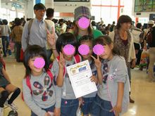 今日ははるのダンスコンテストです。駅でお友達と待ち合わせをして、久しぶりに電車に乗って、バスを乗り継いで出かけました。最近電車に乗ることがほとんどなかったので、それだけではるはウキウキ。でもしばらくしたらなんと爆睡お友達もビックリあなた大物だよ。。さて会場に着くとすでに熱気ムンムン。はる達が出場するカテゴリーは19組がエントリー。うち入賞は4組。なかなか厳しいです。普段緊張という言葉を知らないはる。ある意味いつも安心して見ていられるのですが、今日はなんだかいつもと違う。電車で寝ちゃった時は、「あ~いつも通り」って思っていたのですが、実はとても緊張していた様なのです。声をかけても上の空だし、大丈夫今回のチームは4人。いつも大勢でダンスする事が多かったもんね。それにこのギャラリーの多さ。いくらはるでも緊張するよね。そして出番。曲が始まっても表情も動きもカタイ。見てる私は心臓バクバク。なんとか最後まで無事に終わります様に。。そう思ってみてました。後半は動きも良くなって一安心元気にフィ二ッシュ出来ました後は結果発表を待つのみ。最初はみんな入賞を狙うなんて考えてもいなかったのに、踊ってみて手ごたえがあったのか「賞を取りたい!」って言い出した4人。審査中もずっと祈ってました。そして結果発表。見事入賞を果たす事が出来ましたこの曲を選んで練習は始めた頃は、全く出来なくて、踊れる様になるのかなって不安になった事もあったけど、やれば出来るんですね。結果はどうあれ、1つの事を頑張って続ける事の大切さをみんな実感したみたい。嬉しそうなはるやお友達を見ていたら、こちらまで幸せな気持ちになりました。みんなお疲れ様。よく頑張りました表彰式後に先生と