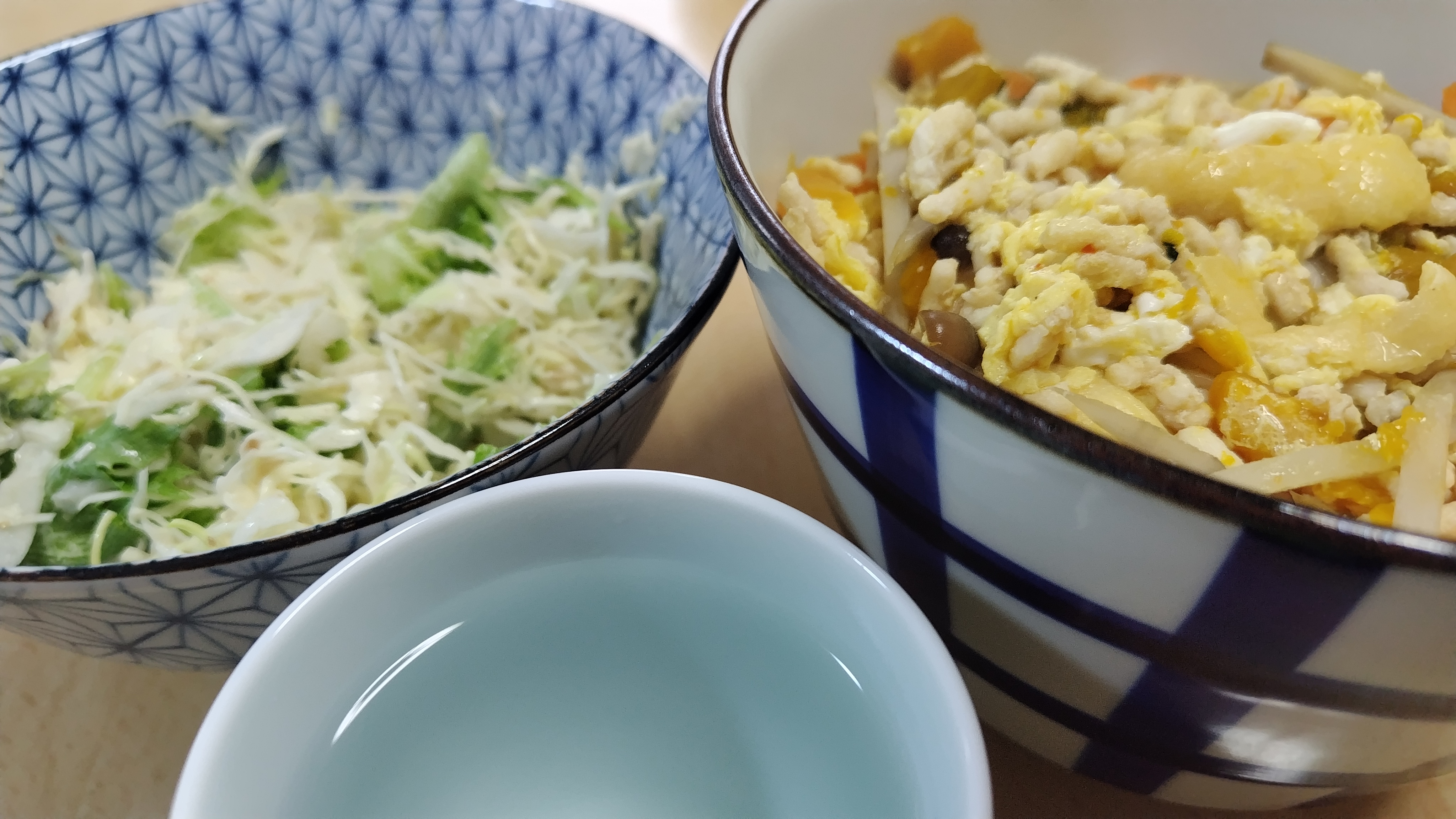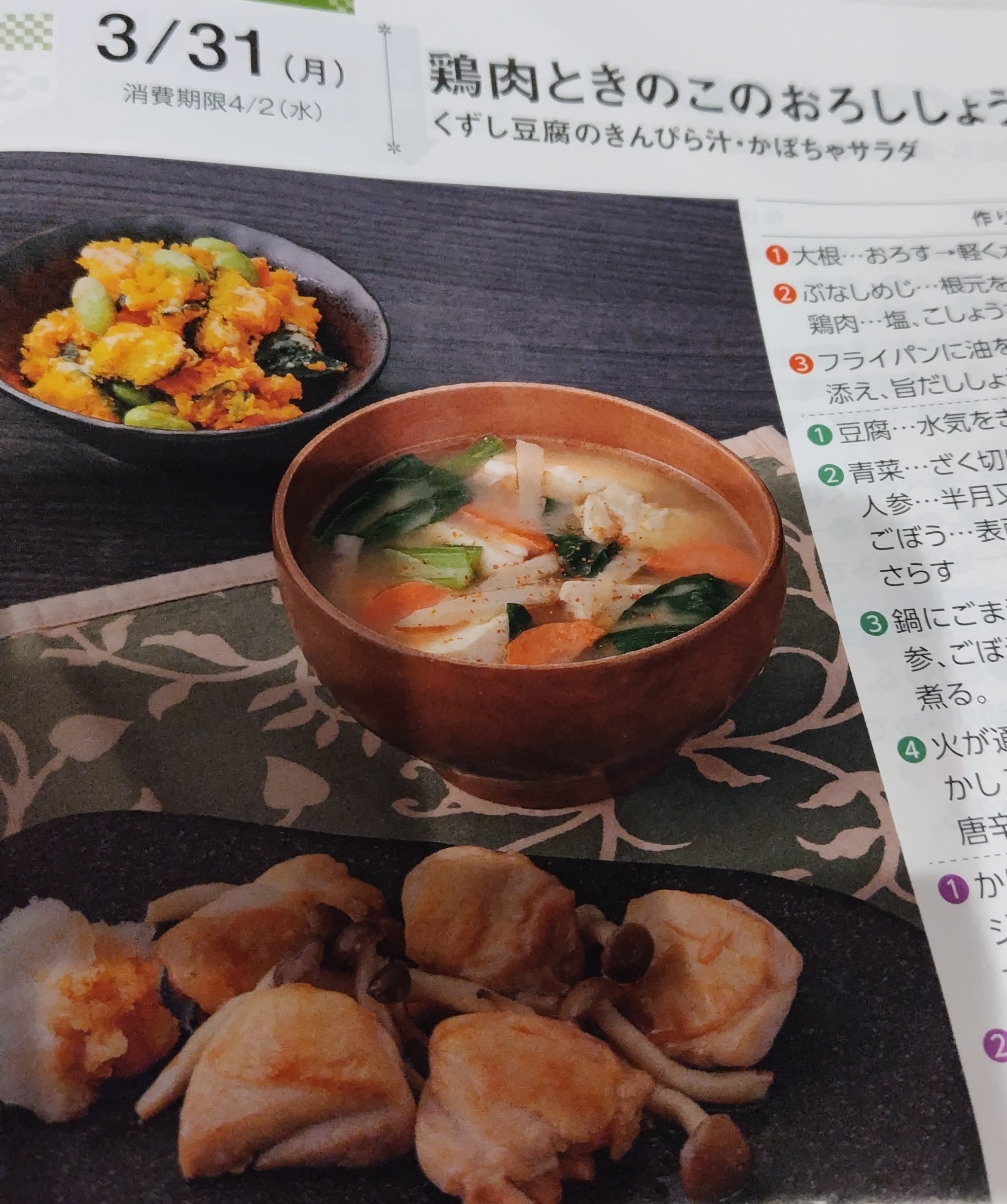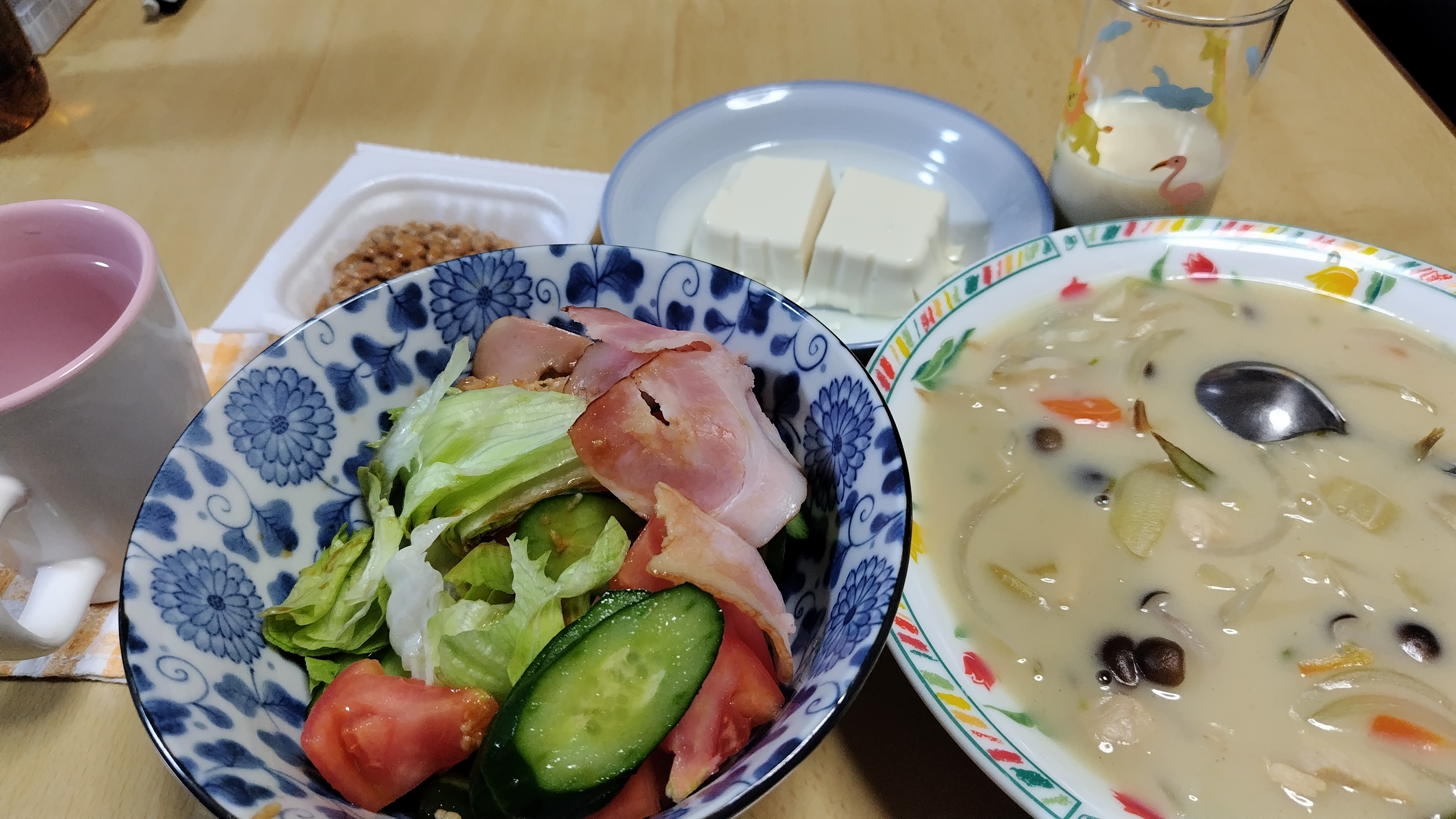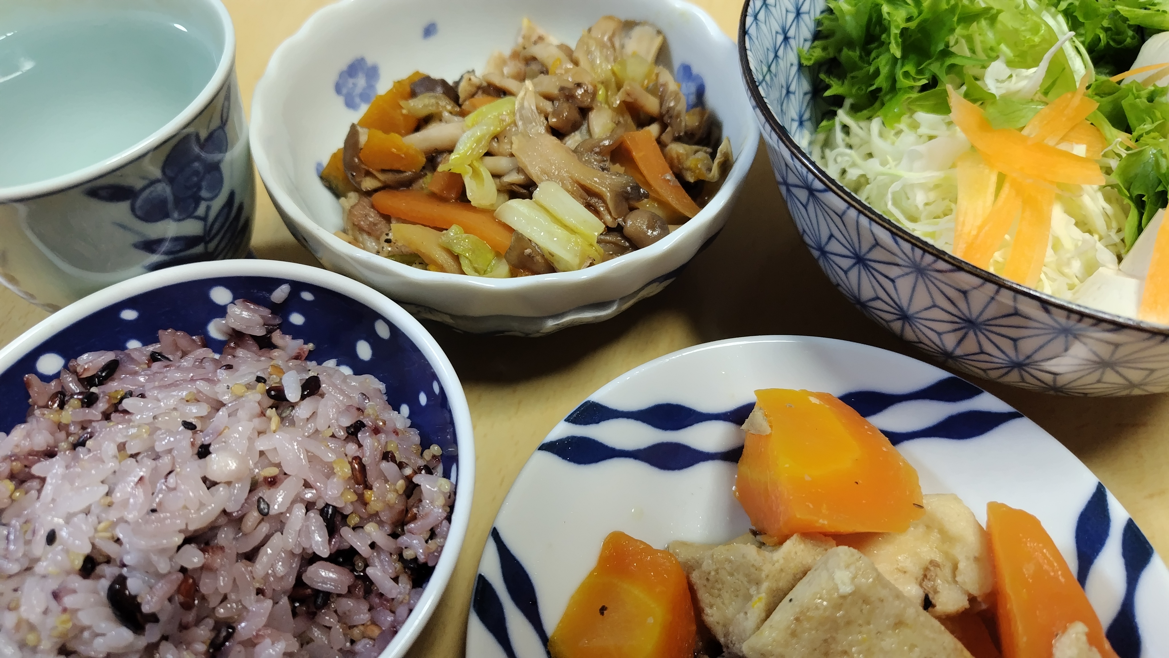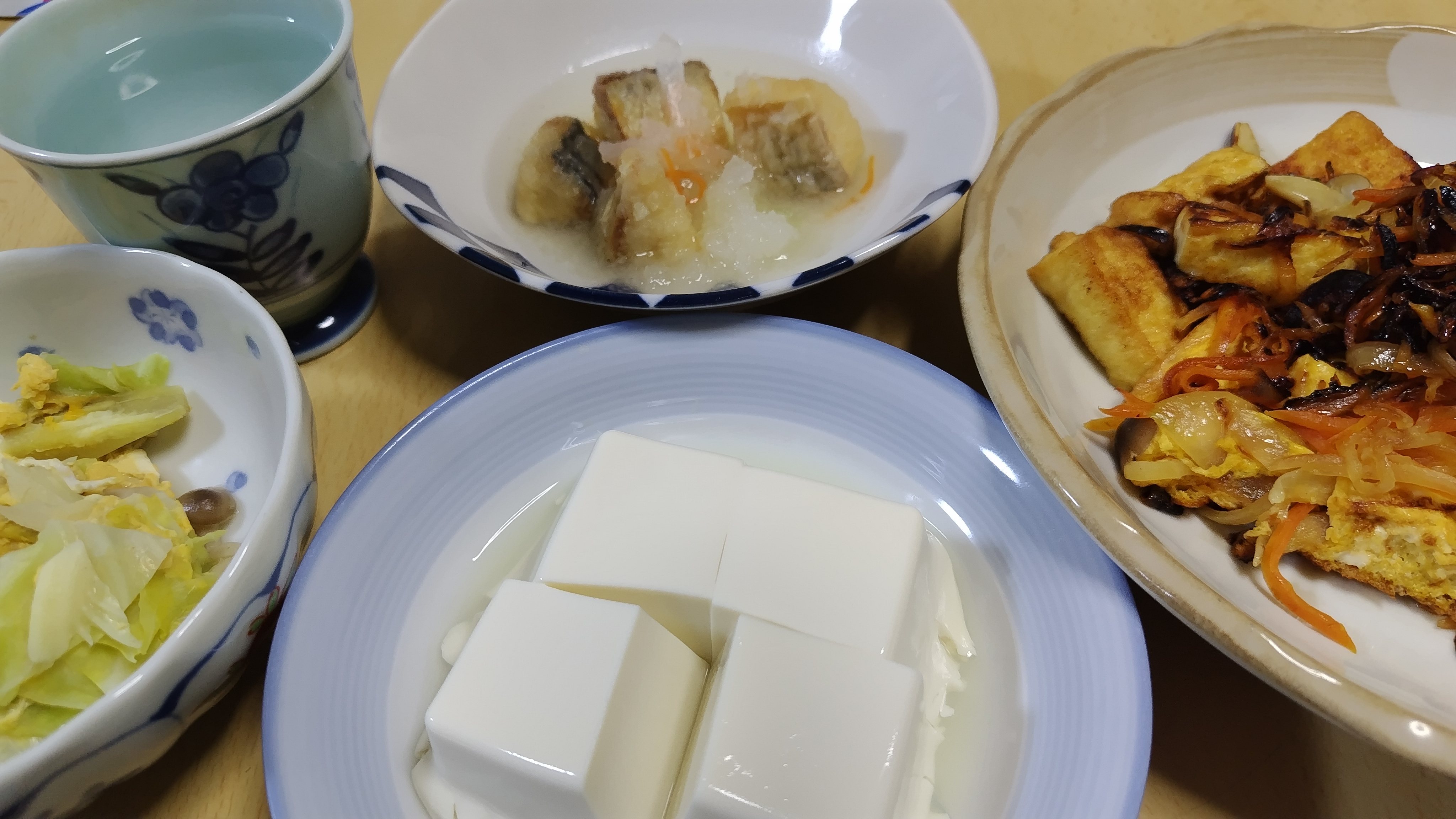 2025年3月29日(土) 晩ごはん白湯ごはん野菜サラダ高野豆腐と人参と豚肉とコンニャクの煮たの豚肉とかぼちゃとキャベツと人参な蒸したの極小こうや 高野豆腐 こうや豆腐 国産大豆 70g×2袋セットゆうパケット送料無料 ※代引・包装不可 ポイント消化