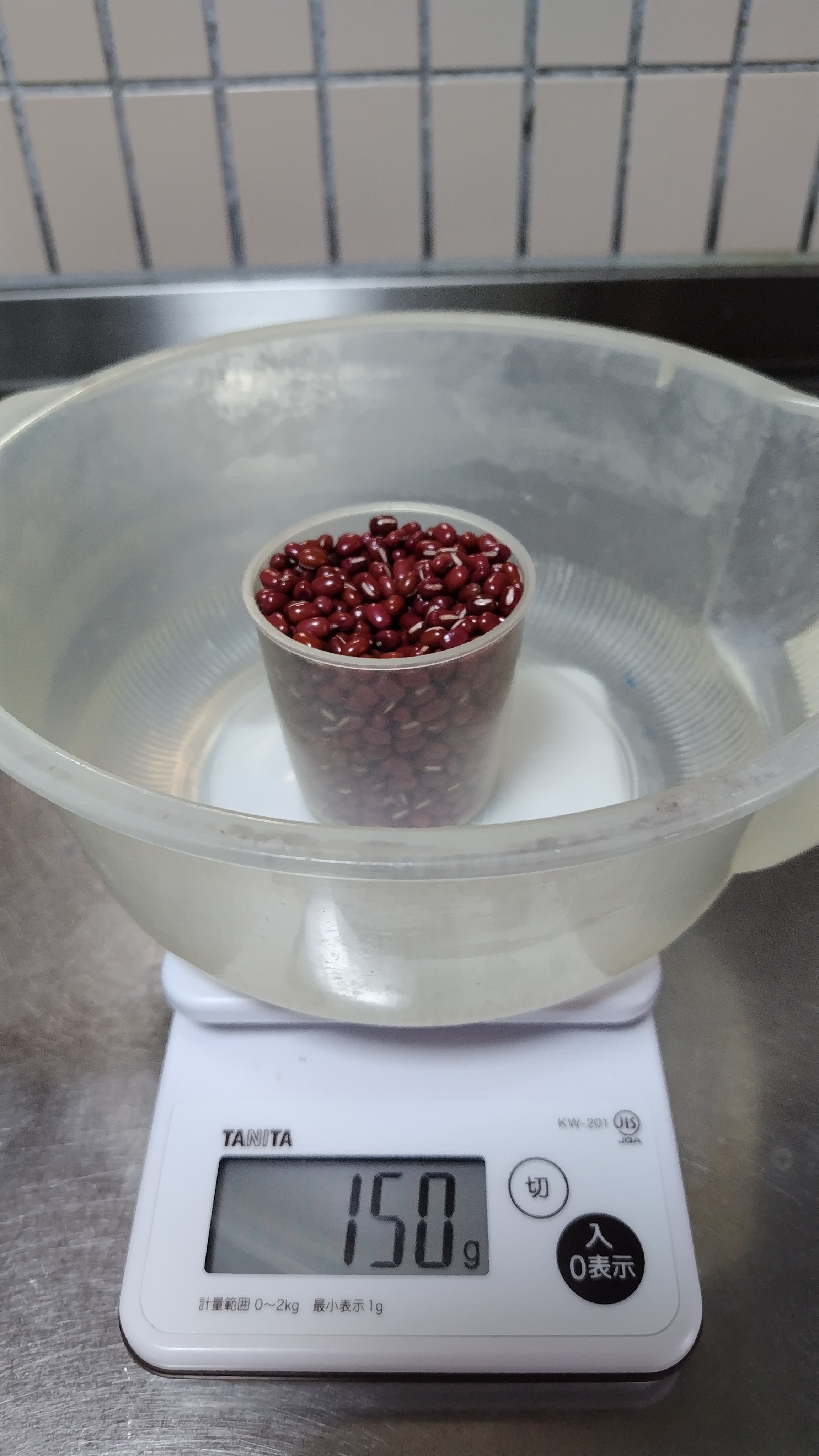 小豆を炊飯器で煮る小豆300g(2合)上を2個で300g(2合)小豆を洗うたっぷりの熱湯で10分間グツグツ煮る渋抜き10分間煮たらザルにあげる水は鍋で煮る時には3倍で、コトコト中火くらいで水を足しながら煮るが炊飯器で単純に水を3倍にしたら炊飯器の中で水が少しこぼれたなので小豆2合の時は内釜の玄米モードの3,水の線の少し上にした炊飯器で玄米モードで炊く