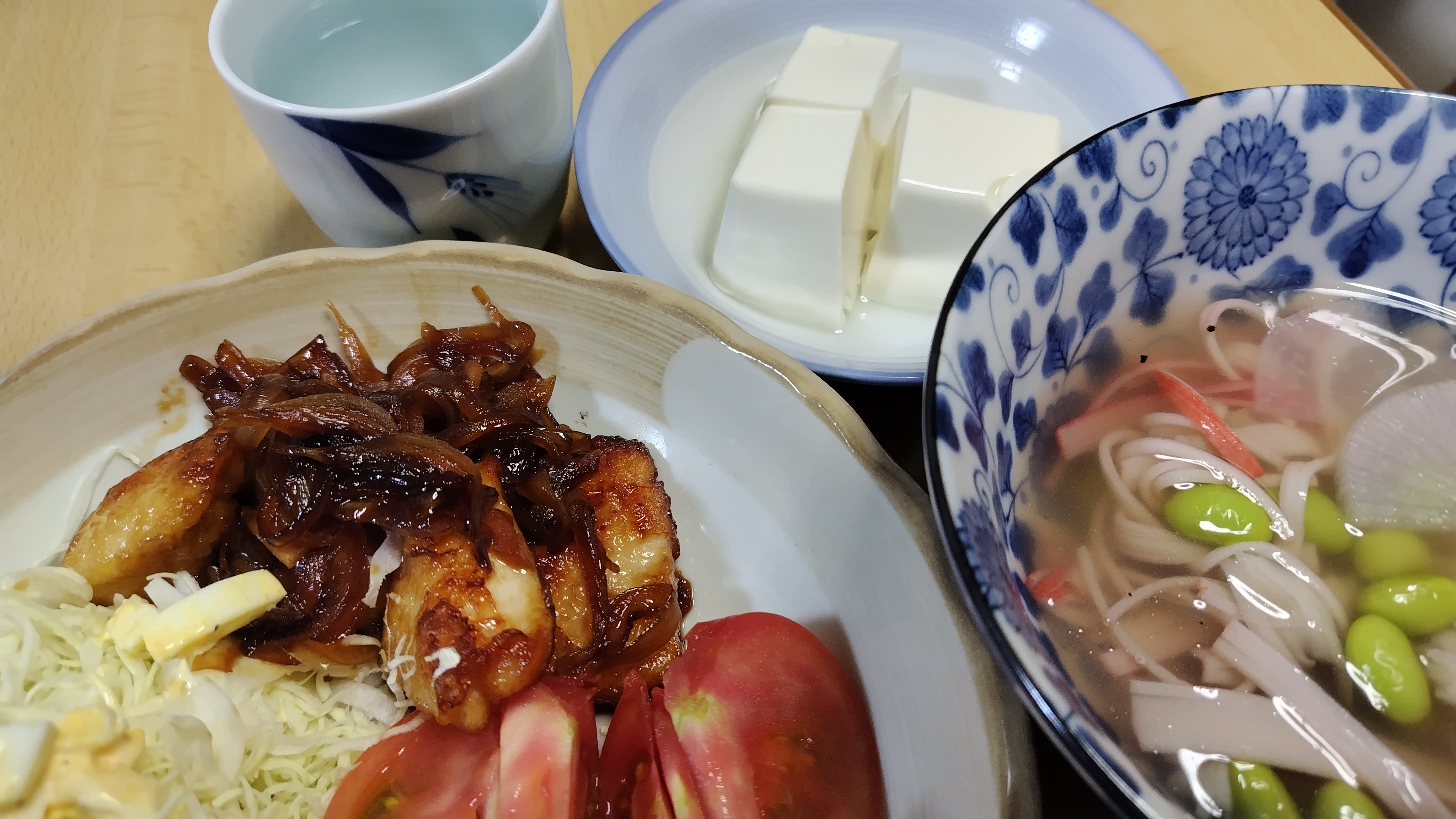 2025年3月24日(月) 晩ごはん白湯レンチン豆腐玉ねぎと人参とたまごを炒めた魚の南蛮漬け朝のスープの残りこれで晩御飯を終わりにしたがお菓子を食べてしまった送料無料 ギンビス アスパラガス 135g×12個