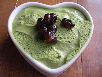 最近のお気に入り手作りお菓子はムース。ヨーグルトムース、チョコレートムース…何回も何回も作りました。メレンゲをしっかり作って泡立てた生クリームを混ぜるだけ。ゼラチンの使い方を間違えなければ簡単にフワフワ~なムースが出来ます。午前中に幼稚園のママが来てくれる予定だったので前日に抹茶ムースを作りました。初めて作りましたがほろ苦くておいしいムースが完成大きい画像ですが手のひらにのるプチサイズです。上にのっている大納言の甘煮は市販品。クオカから取り寄せました。自分じゃとってもこんな味は出来ません。芯まで品よく甘いんです。ホンモノのお豆の味。ここまで完璧に崩れずに炊くなんて…すごいっす。このハート型の陶器製の入れ物がかわいくてお気に入り。これもクオカお世話になってます。あまりにも好評で家族でムースを奪い合い嬉しいけどケンカしないでぇ~最後の一個を前に 夫が「それはパパのだっっ」とコワイ顔。子ども相手にアツくならないでよね…
