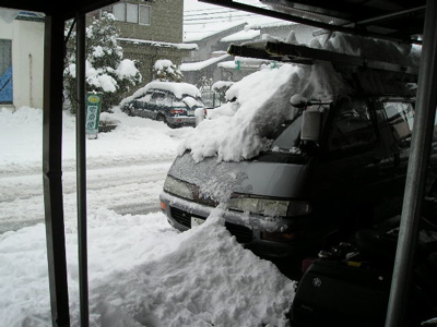 名古屋に行くときは,ある駐車場に止めておいてバスで行くのです。行きはバスで帰りはバスは全く動いて無く、電車で帰って来る嫁を駅まで迎えに行ってから、一駅以上離れた駐車場に3日間止めておいたクルマを掘り起こさなくてはなりません。コッポリと埋まってました。これでも今日はお日様が出ていたので、多少は解けているはずです。