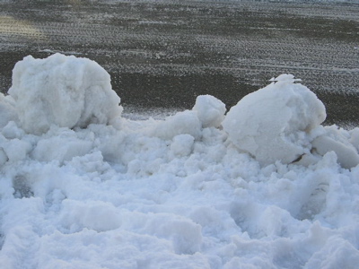 直径70~80cmの堅い堅いおにぎりを置いていってくれます。雪のないところから来た子供は喜ぶかもしれないけれどこれを処理しなければならない我々にとっては大きなお世話です。其れと壁をつくってくれます。この壁を壊さないとクルマも出ることが出来ません。こう云うのが除雪とは私は云いません。そのまあ何もせずに置いておいてくれた方が嬉しいです。消雪をして欲しい!!今日はバスも電車も動くだろうから、足止めを食っていた家の嫁もやっと帰ってこれるだろう。お土産話を持って。