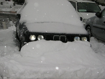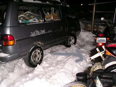 家の前の車庫に入れるのにはまってしまい、やっと入れたのですがたっぷり間が開いてしまいました。四輪駆動とはいえ万能ではありませんし、最強ではありません。私はよ~く分かっているつもりでしたがついつい甘く見てはめてしまいました。いわゆる、亀の子状態です。クルマのお腹に詰まった雪を出そうにも中々出ません。しっかりと雪を空かせば良かったのですが、勢いを付けて雪に乗り上げてしまいました。大分良い運動をしました。まだまだ降るそうです。
