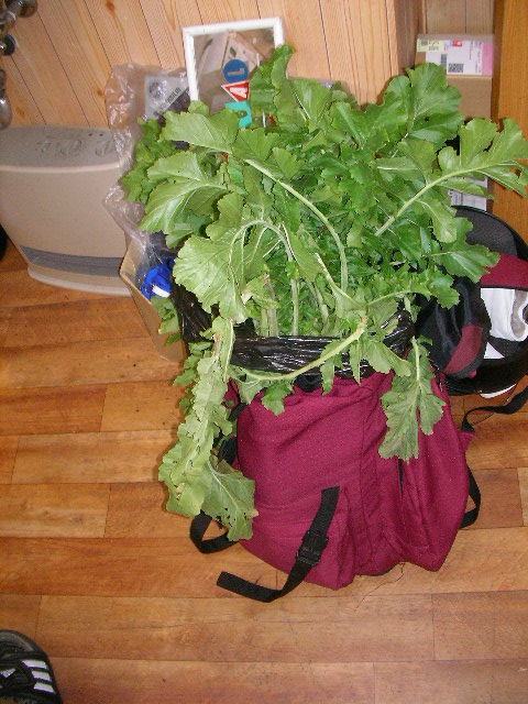 二件集金ができました。天気がよくバイクでも暑いくらいです。沢山着ているのでスクーターが小さいですね。身長170-体重80超です。背中に雑誌9冊ダイコン三本入ってましてかなり重いです。10~15キロはありそうです。ちなみにダイコンはお客さんにいただいたものです。凄くでっかくて市販品の三倍はあります。この写真はダイコン一本抜いた写真です。