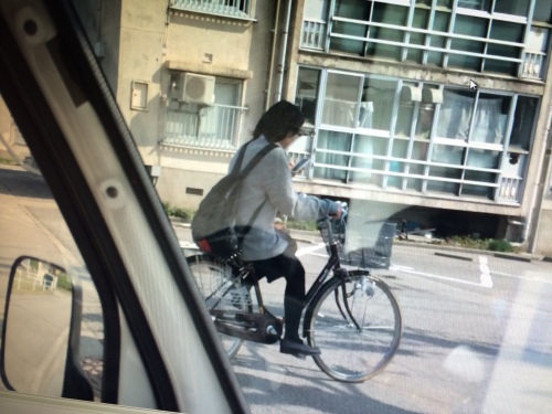 私が醤油を買いに行く途中で車の前に飛び出してくる自転車がありました。よくよく見ると携帯中毒女子高生。ほとんど携帯の画面を見て何やら操作しているようです。車の前に出てきたのはなにか障害物を避けたのだと思われます。それにしても確かめないで急に出てくるとは怖いですね。しかし携帯を見ながら障害物も見ているとはなかなかの携帯中毒名人かな???