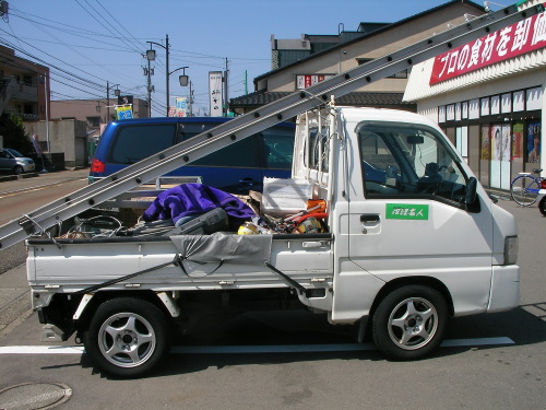 はしごが傾いたので即道端に車を寄せたのですが、時すでに遅し、はしごが羽のように数十メートル吹き飛んで国道をふさいでしまいました。慌てて車を止め事なきに至りましたが、はしごは片足が折れ先の方は大きな亀裂が入り全体は弓のように曲がり、紐は切れてしまいもう使い物にはならず後ろのバッタリも曲がってしまいましたが、写真を撮る暇もなく現場を一刻も早くかたずけることで精一杯でした。片付け終わってその場所の写真を撮りましたが後で反省の材料にします。さてさて、原因は何かというと全て私が悪いのです。はしごがホームセンター用の安物でして、せいぜい2万円ちょっと、良いものならその倍はします。長いのと軽いのとで、銀線名人軽トラはスポーツカーのように走れますのでちょっとスピードを出しましたら、あまりに速く走りすぎてはしごに羽が生えたように舞い上がりました。ちょうど飛行機の羽のようでした。後日写真をアップしますがはしごを縛っていた二ミリ三心のVAケーブルが見事にぶちきれておりました。はしごを下ろしておけばよかったのですが、非常に場所をとりますのでトラックに積みっぱなしが良くなかったのです。しかしこれをいい教訓にしまして、はしごが必要な仕事はするな、またもっといいはしごを使え、そのほか前向きに考えればいろんな反省点があります。損得勘定をすれば2万数千円の損ですが、仕事を入れてなかったので大変良かったのです。はしごが必要な仕事を入れてあればこのことで仕事に穴があいてしまいます。純然たる遊びで走っておりましたのでよかったです。実は焼鯖を食べに走っていたのでありました。なんと