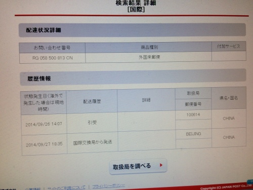 私が甘うございました。日本に着いたのではなく川崎という外国に着いたのでした。そこから通関という何が無いやらわからないものをしてから、日本の川崎にやっとこさ着いたのでした。さてさてここからやっとこさ出発、メール便よりもかなり遅くて裏技も通じないのだ!!
