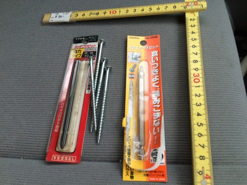 +ビットと四角ビット自分で言わないとだれも言ってくれないので言いますが、私の電気屋としての技術レベルは高いと思われます。その私よりも高レベルのKさんがひょんなことで悩んでいるのが面白いのです。充電インパクトの+ビットのビストの食いつきはKさんがものすごく研究してます。私はそんなに食い付きが良くなくてもかまいません。そのかわりKさんも私もビットにはビスが落ちないように磁石をつけてます。確かにKさんは屋根の上でステンレスの針金のための長めのビスを打つためですので食いつきを気にするのですが、頭が滑らないように、四角ビスも研究してます。昨日はその四角ビスが滑るのでそのビスを私にくれるというのです。もらうことはうれしいのですが、ちょっと待てや、と私の四角ビットを出してきますと滑ってません。Kさんはそんな馬鹿なといいますが、この点においては、不思議なことに私の勝ちです。Kさんの四角のビットの先がテーパーになってないので滑ってしまっていました。私が作ったわけではありませんが、私の持ってるものはテーパーになっていて深く食い込み滑りません。