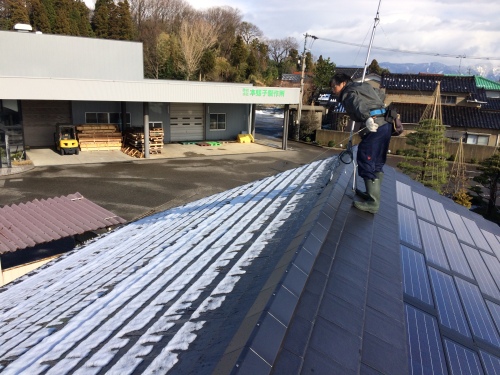 先日の突風でアンテナが倒れました。私がアンテナを支えKさんのお手伝い。屋根の半分は雪がありましたが、運よく上手くいきました。アンテナマストをを素手で支えてましたので冷たくて寒くて大変でした。