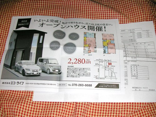 近くてもいつもはクルマでしたが加速と燃費を良くするために歩いて行きましたら、旗が立っていました。コミコミ2362万円 25年で一月60000円これならアパートよりも安いらしいです。35.55坪、17畳のゆとりあるLDK,駐車3台、二階にゆったり風呂。うちの息子が買って今の家を建て直しその後どちらかを貸すとか、夢が広がりますね。本日の体重 82.8 (通常84キロ) 1.2キロダウン