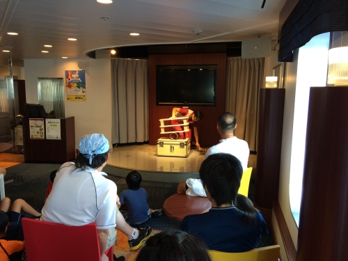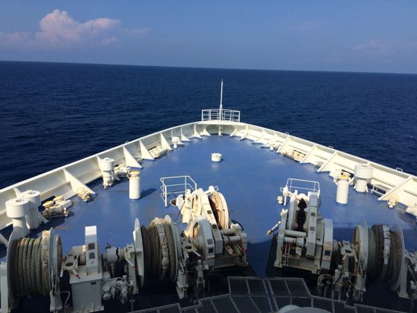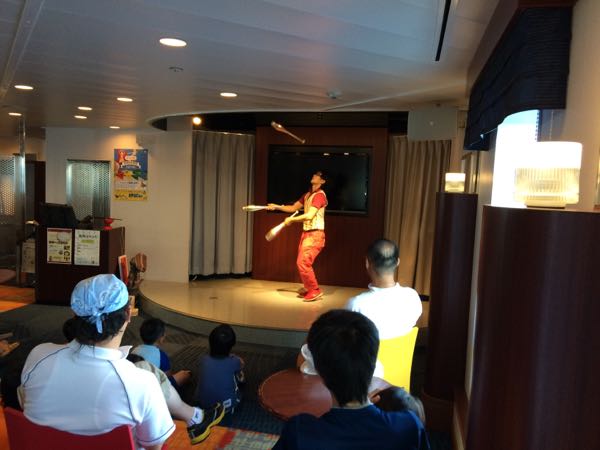 出港の時は多少振動はあったが全く揺れない。北前船が日本海を通ってから大阪に行ったのもこれが影響しているのかもしれない。映画も見たし風呂もはいった。ジャグリングも見たが、ネット環境がないのが唯一の不満。