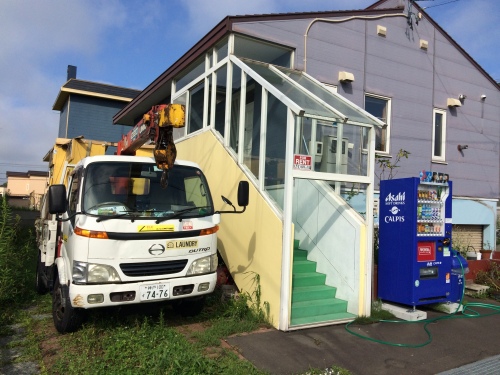 神戸から持ってきたアングルにジョイフルエーカイで買ってきたポリカの波板を装着する。角度は雪が落ちるようにかなりのもの。雪国金沢の私も北海道の雪を知らない。雪と一口に言ってもかなり性格が違うのだ。お昼は天国ラーメンでおすすめのホルモン定食、量も多くこれぞ北海道という感じで漬物が多い。食べていたらいつの間にか漬物が増えた?こういう気取っては居ないローカル色豊かなものは大好きである。ちなみにここにはエアコン設備自体がなかった。これぞ本物の北海道で在る。