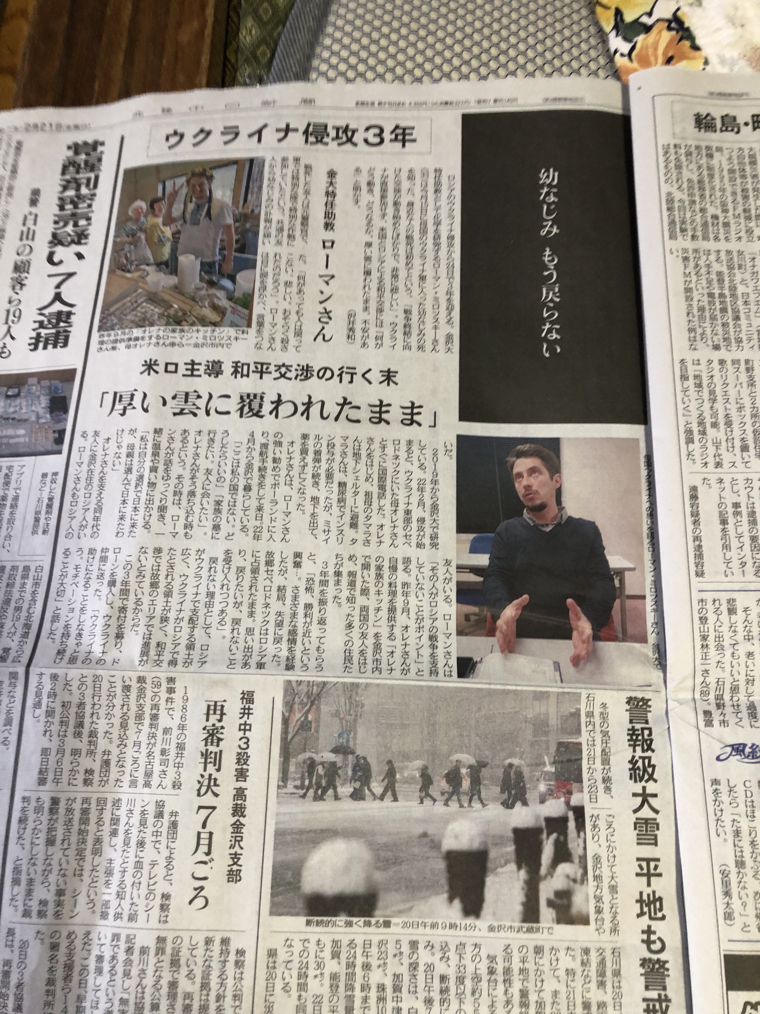 雪が降ったから寒いと言うのは違います。 金沢の雪は降ってすぐに消えてまた降ってと言う感じです。 うちの前の道はほんの少しは雪がありますが数百メートル行けば融雪装置が有って雪はありません。自転車だってバイクだって走れます🏍。 年中裸足が好きな私が靴下を履く位寒いです。 冷たい飲み物が好きな私がホットオレンジにして不味いなと言ってるくらいの寒さです。 湿気がある方がじっとりと寒いのです。