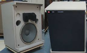 近くのハードオフで出会う。45年前のはWXだったが。オーディオの足跡サウンドハウスJBL 4320 1971年発売4320:¥392,800(1台、1973年頃)4320WX:¥413,400(1台、1973年頃) 解説 2ウェイ構成のスタジオモニター。低域には38cmコーン型ウーファー2215Bを搭載しています。このユニットにはJBLが開発した成形気泡リング・エッジを採用することで1.27cm以上のコーン振動が可能です。また、最低共振周波数も20Hzとなっています。高域にはドライバー2420とホーンレンズ2391で構成されたホーン型トゥイーターを搭載しています。2420には0.05mm厚のジュラルミン合金製ダイアフラムを採用しており、4オクターブ以上の広帯域再生を実現しています。また、純銀製インピーダンス・コントロール・リングの働きによって可聴周波数の最高域まで輻射効率を高めています。このドライバーにホーンレンズ2391を装備することで指向特性を改善しています。2391は38゜の角度で6.3mm間隔で並べた11枚の傾斜プレートからなり、レンズ正面は正確に計算された双曲線カーブとなっています。エンクロージャーは19mm厚の一枚板を用いた構造となっています。