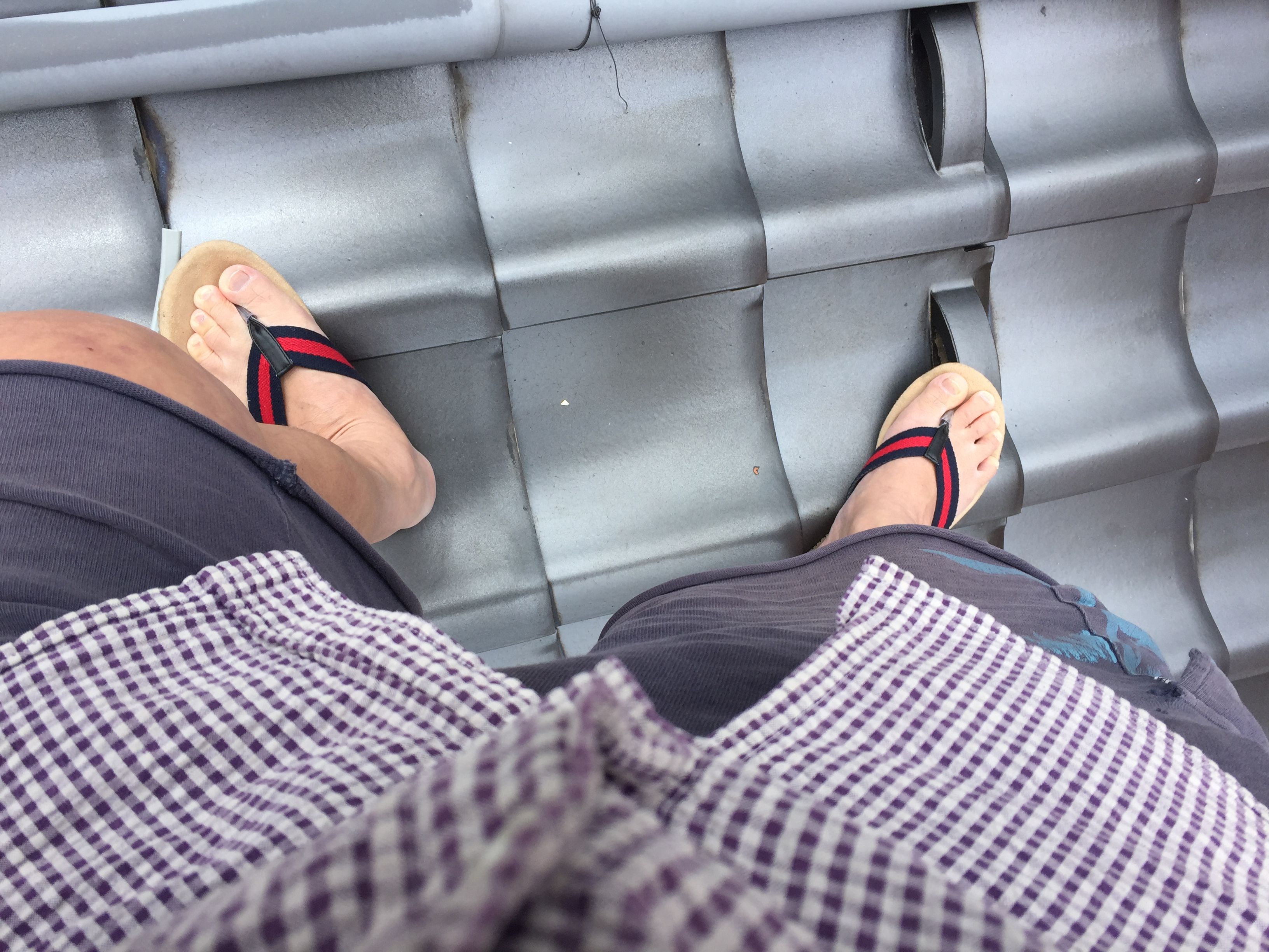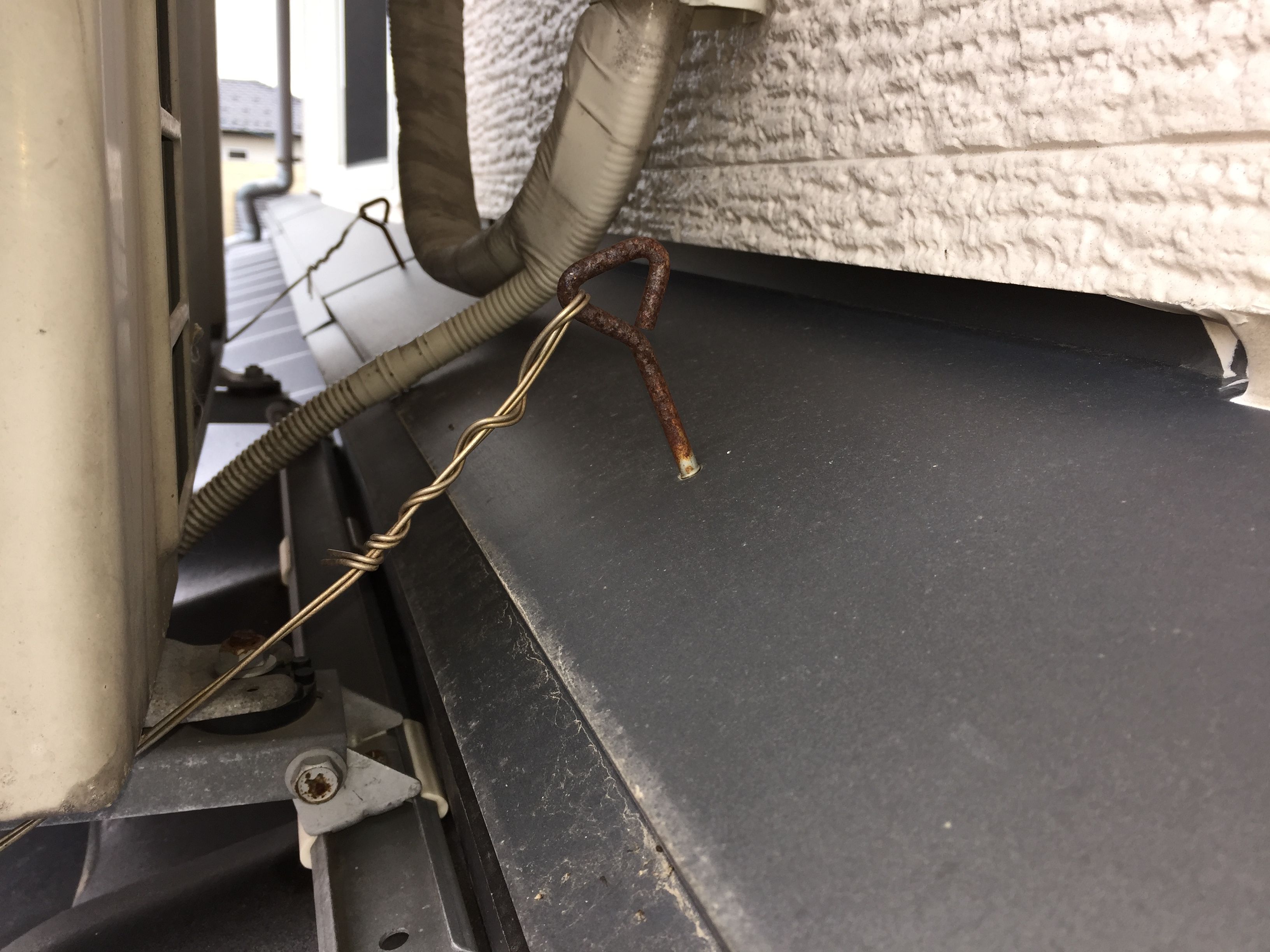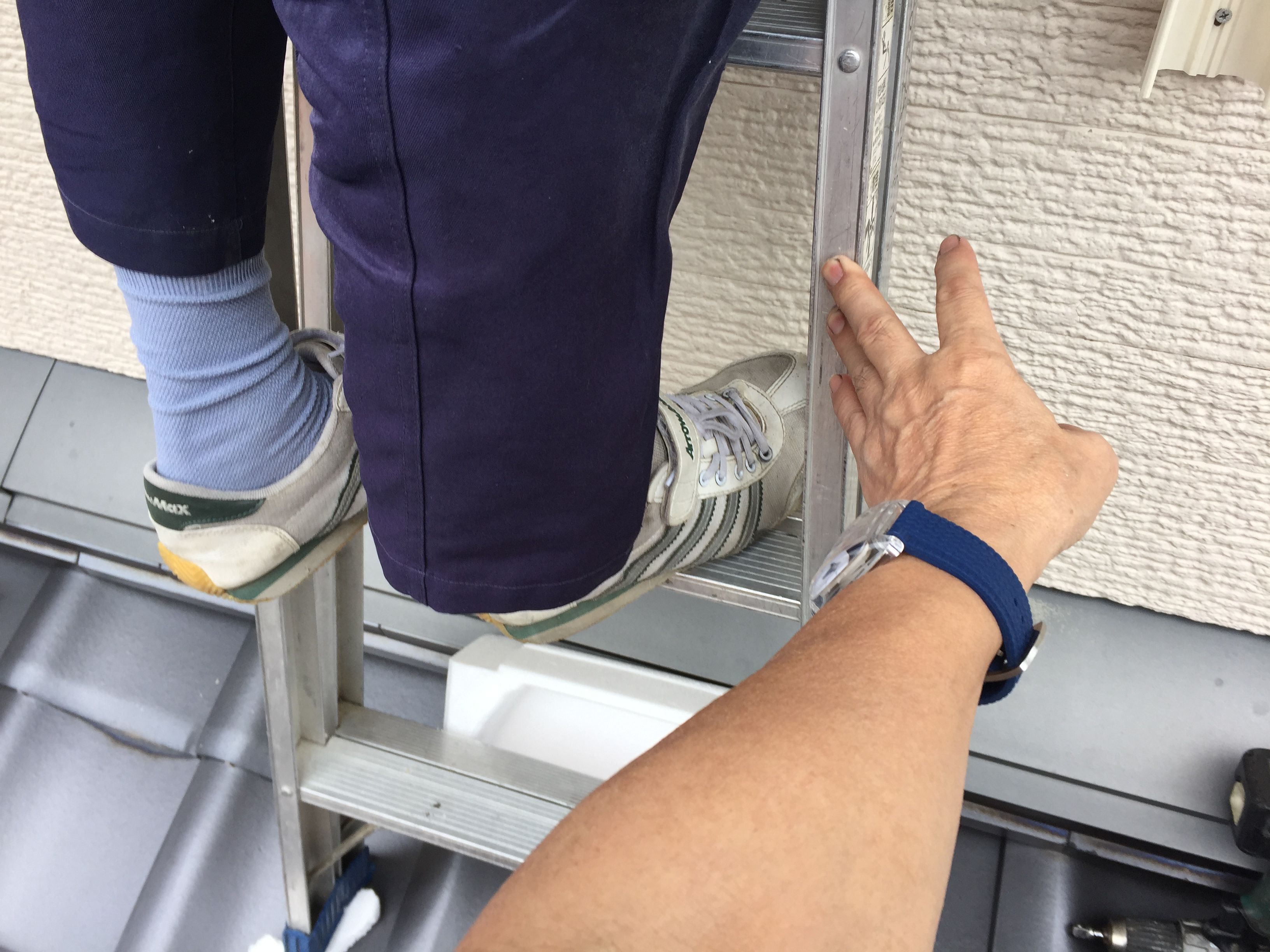 残念ながら、二階の窓からは出ることは出来ませんので室外機はハシゴで挙げねばなりません。