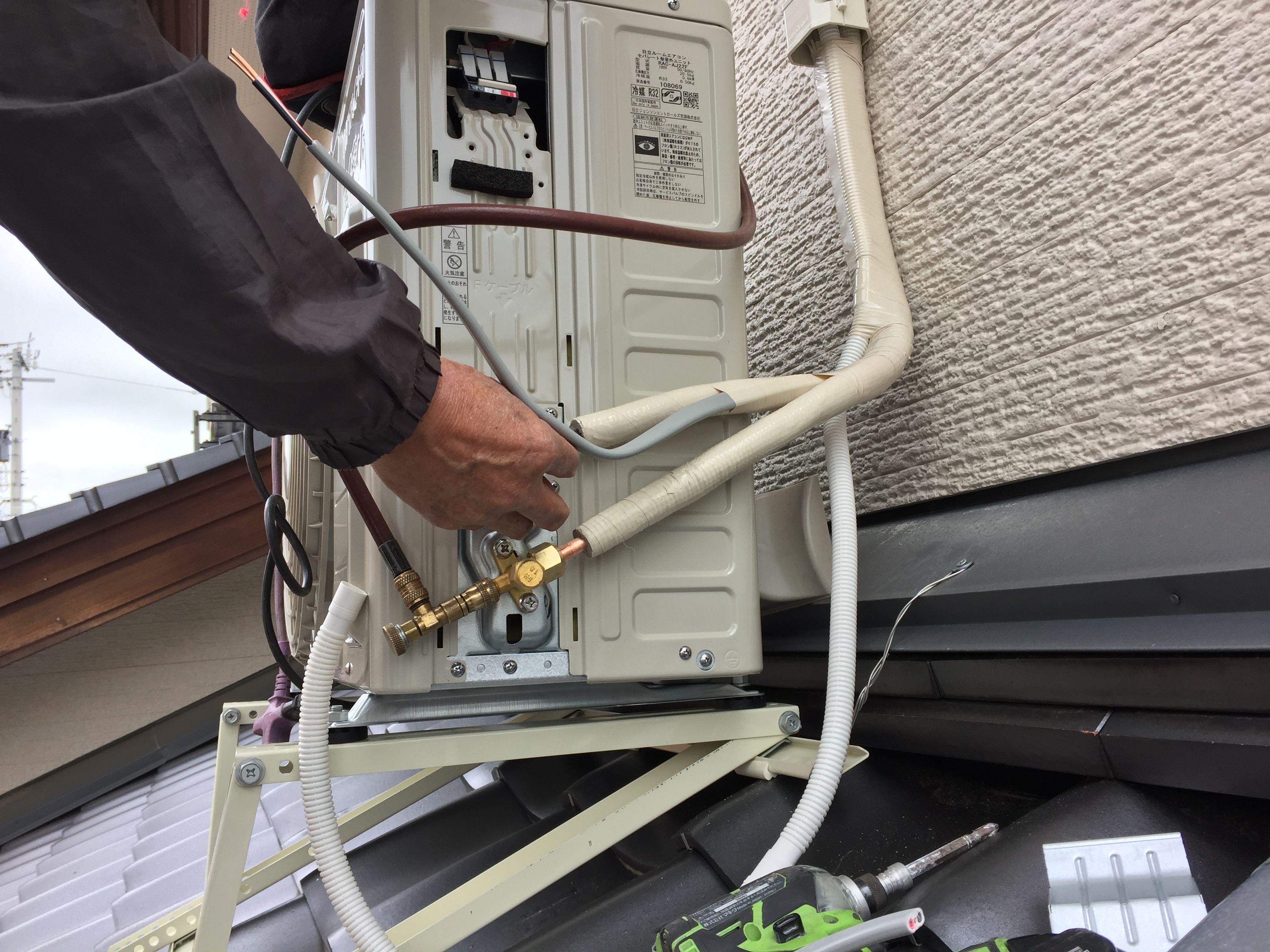 私どもに頼んでいただくとそのくらいですが、量販店に家にある新品又は外した中古のエアコンを取り付けて欲しいと頼むと2万円を遥かに超えてしまいます。