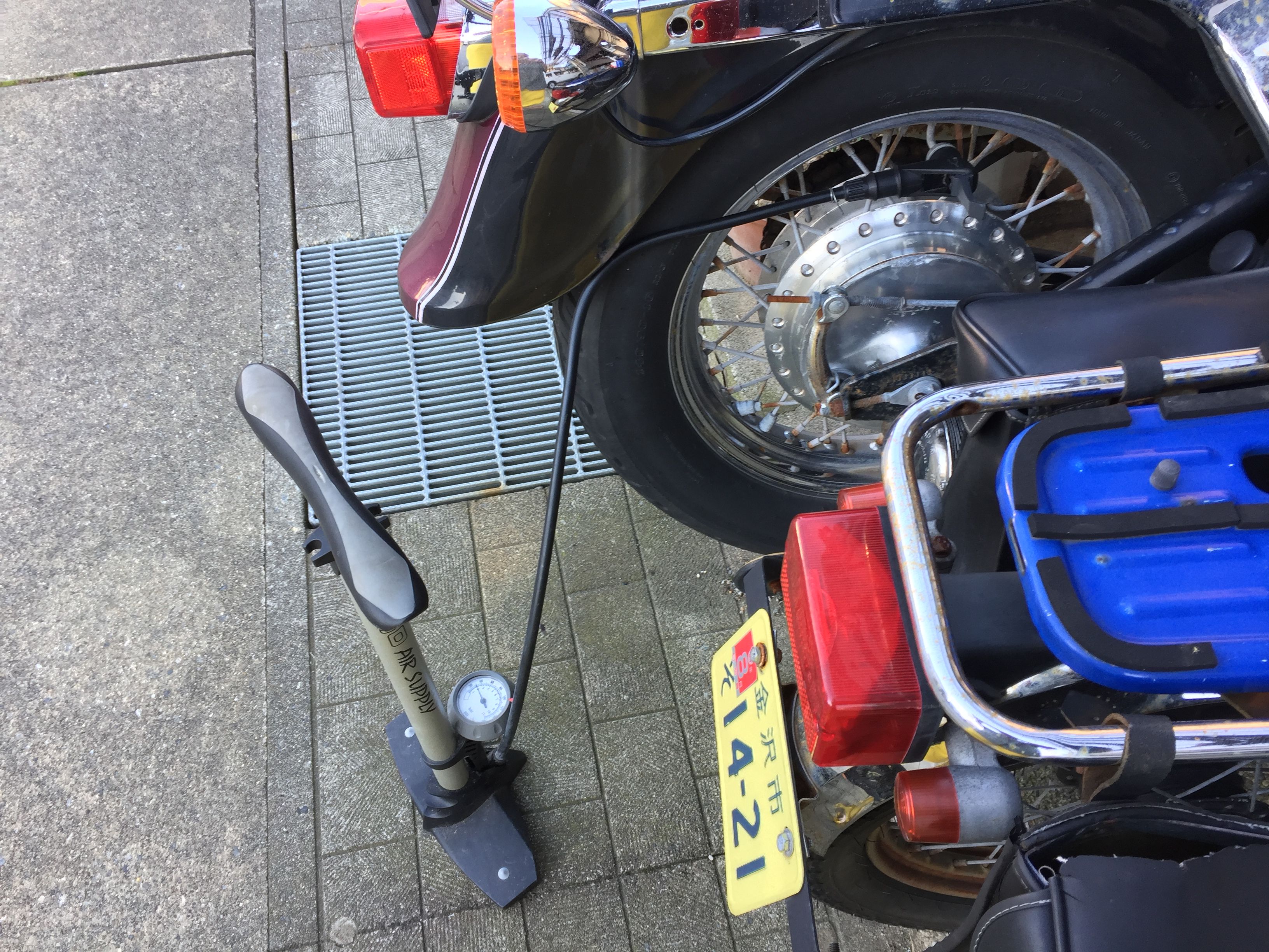 コンプレッサーを動かすのがめんどくさかったので、ロードレーサーの空気入れでエアーを補充しましたが中々の重労働でした。