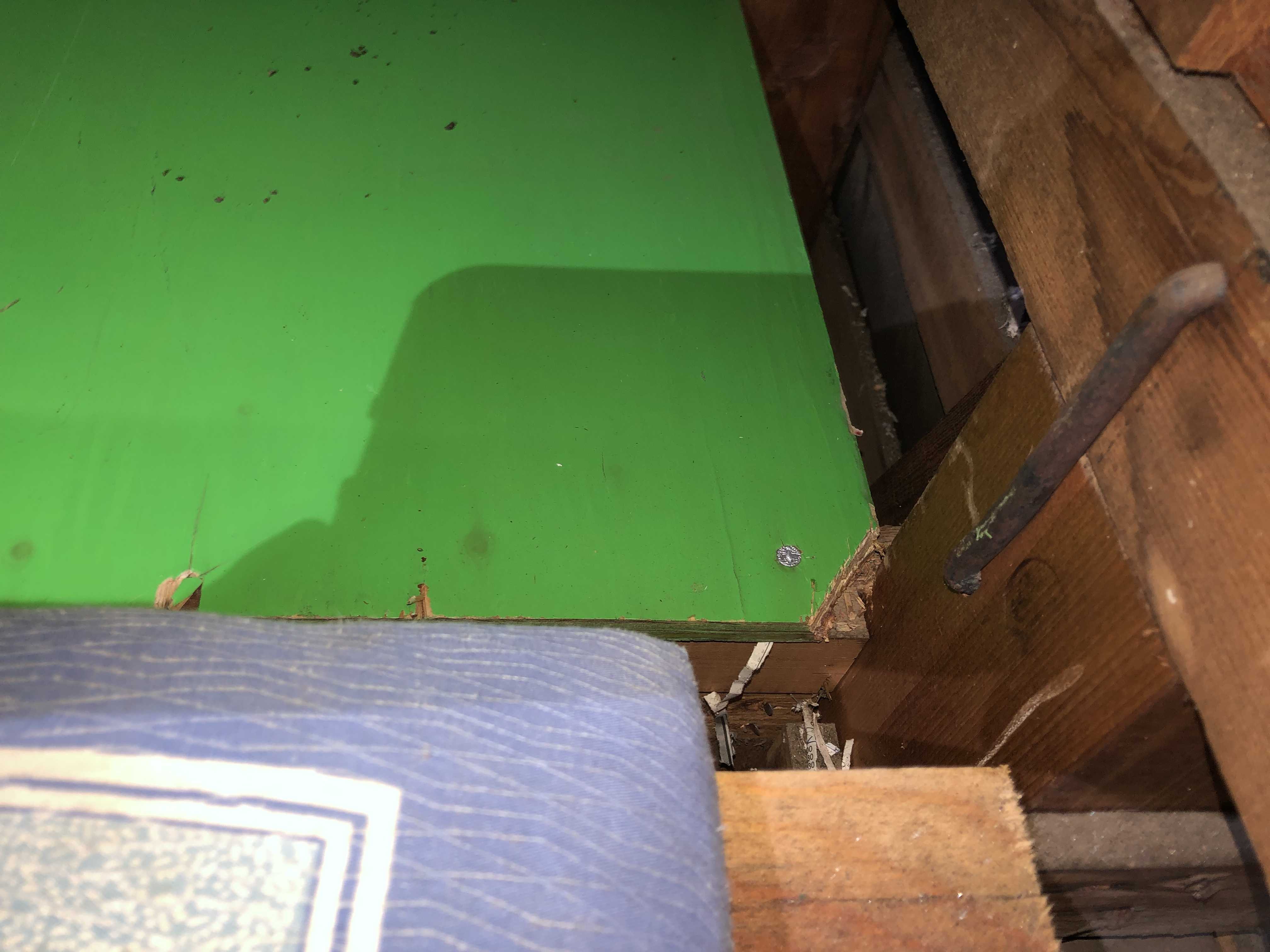 前回の反省でノミのハンマーを大きくしてドリルで穴を沢山あけて、これで4隅をビスで停めることが出来ました。