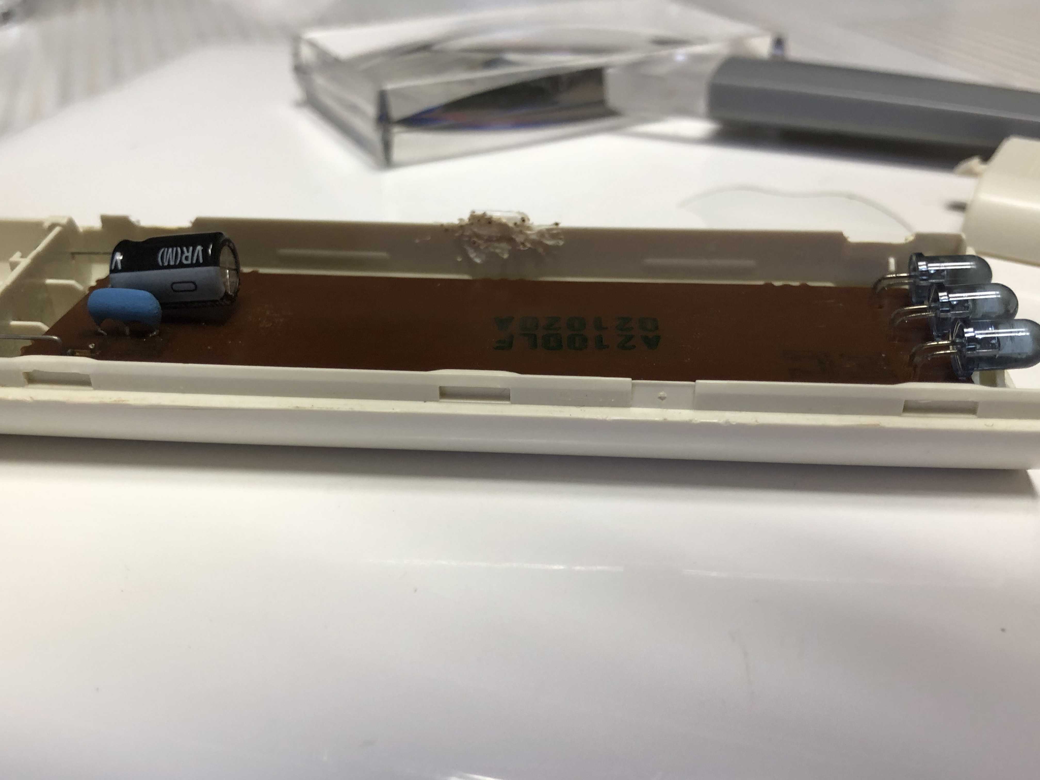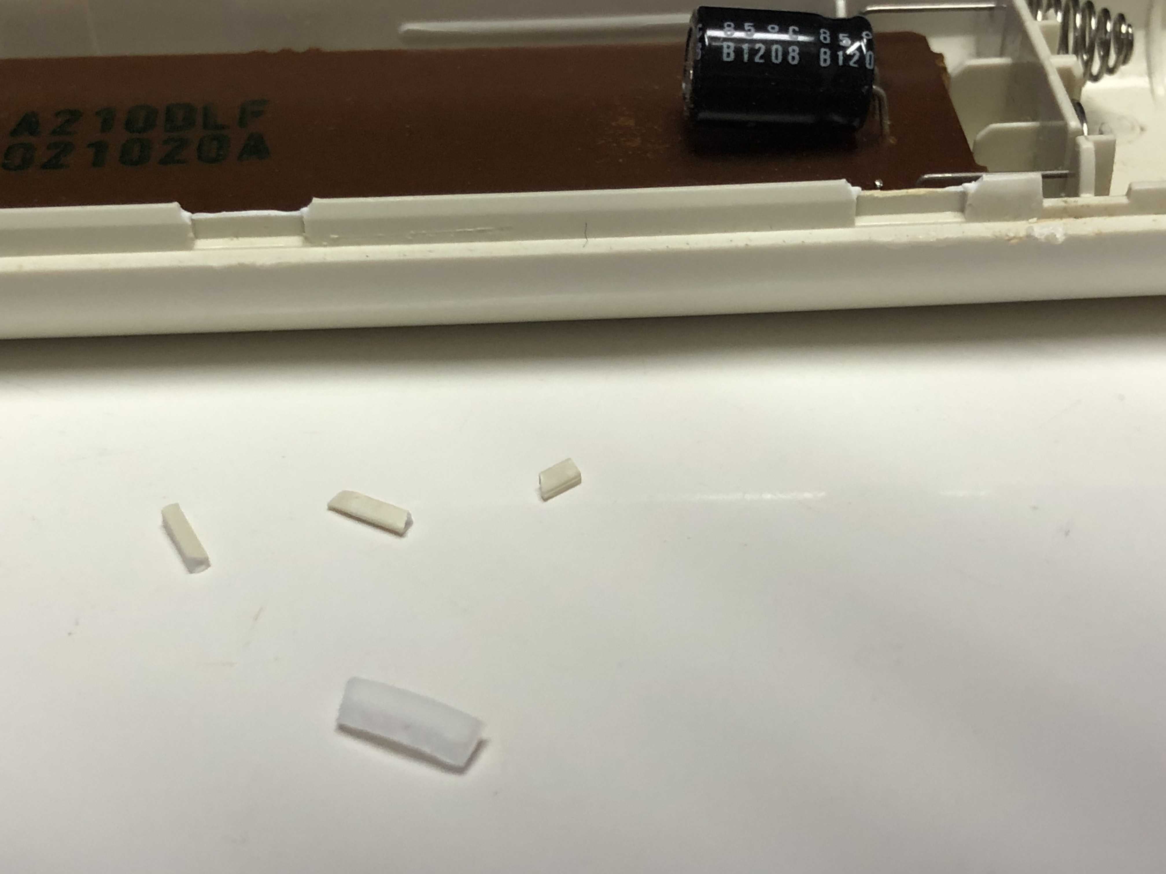 リモコンをバラすビスがついてないので簡単な精密ドライバーでこじ開けました。