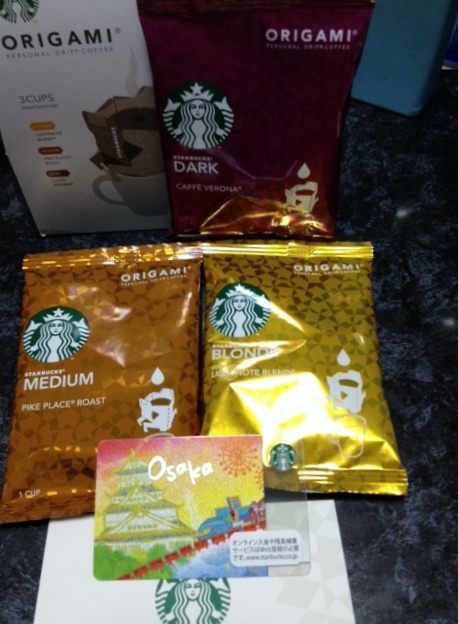 10月22日は、My Birthdayです。娘と息子から・・・下の画像のプレゼントをもらっちゃいました。コーヒー好きのわたしのためにって、スタバの3種詰め合わせ『おりがみ』と「一緒にお茶しに行こうね!」ってギフトカードです。とても嬉しいプレゼントでした。ありがとう!
