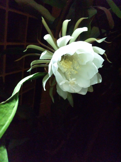 月下美人です。1年間に1度真夜中に3時間花を見せてくれます。隣の市の親友が、携帯に送ってくれました。8月11日のam3:00に友人宅で撮影。早朝には花を閉じたそうです。薔薇のような香りを残して・・・。なんと魅力的!神秘的な植物なんでしょう!