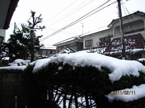 全国的に雪の祝日ですね。奈良中部の盆地にある我が家も積雪10cm。ノーマルタイヤの車では出られず・・・休みで良かったって・・・家にこもっているヌクヌクです。我が家の北向き玄関前の植木です。今年初積雪なのです。