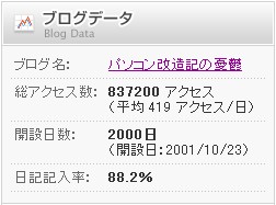 ふと思い立ったので即席で書き上げてみました。・Blog開設2000日記念特集:管理人のメインPC環境を比べてみるBlog開設当時は管理人も中3と言うことで受験戦争の真っ直中、というか「受験勉強もしないで何やってるんだと」お叱りを各所から受けまくる有様だったわけですが(爆やっぱりこの頃からPCは毎日使っており、無いとかなり困る存在となってましたね。購入してすぐの頃は中学校の担任と毎日メールのやりとりをしてたりと、金八先生顔負けのコミュニケーション方法だったのは置いておきますが、中1の頃に購入し当時使用していたメインPCと去年購入して現在使用しているメインPCをスペック等でサクッと比較してみました。■形状当時:マイクロタワー型デスクトップPC現在:モバイルノートPC言うまでもなく違いますね。当時は15インチCRTと組み合わせていたため、あまりに場所を取っていたのを覚えています。また、設置場所もダイニングだったため、大それた行動を取れなかったということも(w今は自室机上にノートPC+セカンダリ用液晶ディスプレイという構成なので、スペースはかなり小さくなり自室と言うこともありhageしいBlog執筆に一役買っていますね。ゲームやり放題(マテ■CPU当時:AMD K6-2 350MHz現在:Intel CeleronM 380 1.6GHzCPUを換装せずに使用しており、OSをWindowsMeにアップグレードして使っていたので遅いことこの上なしでした。DVDのソフトウェア再生もコマ落ちが発生し、「あのときPentiumIIIマシンを買っていれば」と後悔したものです。現在は1.6GHzですが、OSがWindowsXPになったのもあり次元が違う体感速度・・・までは行かないものの不自由なく大体の作業をこなせるようになりました。軽いエンコード作業も普通にこなしてくれますからね。■メモリ当時:192MB SDR SDRAM現在:1GB DDR SDRAMWin9x系だとメモリがこれくらいでも十分でしたが(その前にリソース不足でアプリがぼっこぼこ落ちるので)、XPだとどう見ても容量不足なので増設した結果。昔は恐ろしくて出来なかったIEのウィンドウ6枚にWMPにFireFoxにTeraPad、常駐系大量と言った荒い使い方でも普通に動くのがやっぱりNT系OSだなぁと。■HDD当時:30GB現在:80GBノートなのであまり容量は増えていません。当時はコジマの抽選販売で当たった外付けHDD 30GBの中身をバラして、元の6.4GBから交換して使ってました。忌まわしきDTLAですね。その後2~3世代に渡って流用しましたが、途中で逝ってしまわれました。現在は80GBで、動画等デカイファイルは外付け160GBに入れているのでさほど残容量は気にならないですね。■光学ドライブ当時:CD-ROMドライブ現在:DVDスーパーマルチドライブ実はDVD-ROMドライブに換装していたのですが、コマ落ちしますし後にサブのPCでDVD-Video再生したい衝動に駆られて元に戻ってしまいました。今はDVDスーパーマルチドライブですが、結局のところCD-ROM/DVD-ROM/DVD-Video/音楽CDの再生が主で記録はほとんどしないですねぇ。正に宝の持ち腐れ。DVDコンボドライブでも事足りるような使い方です。■ディスプレイ当時:15インチCRT現在:13.3インチ液晶(プライマリ)+17インチ液晶(セカンダリ)CRTの「ぶ~ん」という消磁音が懐かしいですねぇ。セットのCRTでしたが、それなりに使っているとやっぱり微妙にフォーカスがずれてきて(´・ω・`)ショボーンでした。それ以前に領域狭いなぁと。15インチなのでXGAくらいで使ってました。今はノート内蔵液晶(XGA)とサブの液晶ディスプレイ(SXGA)をデュアルディスプレイで使っているので、当時では考えられなかった作業領域の広さです。■OS当時:WindowsMe現在:WindowsXP Home Edition最後のWin9xで安定性に難があったWindowsMeを当時は使っていました。というかわざわざ予約して購入したほどですが?(w中学校でも職員室ではMeブームが到来し、98で使用していた先生もこぞってWindowsMeにアップグレードしてましたねぇ。そしてアップグレードするときも一太郎などのインストールと同様に考えていたためかトラブル多発。パソコン部の部長を務めていた当時の自分に持ち込みが絶えませんでしたね。まぁ自分も手を焼いてましたが。WindowsXPになってからはかなり安定していましたが、やっぱりSP1までが良かった気がしますよ。SP2になってから重くなった印象が強いです。とりあえずは主な点がこれくらい、他はネット回線のADSL1.5Mbps→FTTH化やプリンタの単体4色機→複合5色機化、LANの10BASE-T→100BASE-TX+IEEE802.11a/b/g化など挙げればきりがないのですが、全てをまとめると当時の劣悪な環境とは雲泥の差ということでしょうかねぇ。改めて思い起こさないと気付きにくいことですが、昔は随分不便な環境だったんだなーと開設2000日記念に思い起こしてみたのでした。・・・ゑ、開設2000日記念がこれだけなのかって?これだけですよ(爆