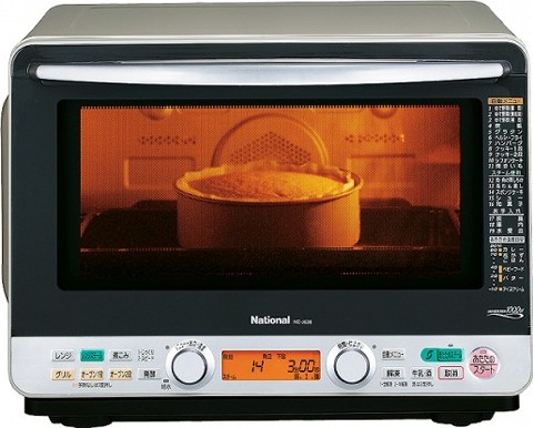 昨日は13日の金曜日で今日は仏滅ですか・・・みうら[姫](´・ω・)カワイソスとりわけ何もなく、強いて言うなら天候が晴/雨/晴と入れ替わりまくったことくらいで、会津に霜注意報とか。4月中旬なんですけど・・・。Prius AirもPrius Deckもある程度環境構築をし終えたので実用し始めましたが、Prius DeckはInstantOnを入れようとしたらHDDフォーマットしないといけないとか抜かすのでやめにしました。そういえばローカルではケロロ軍曹が朝の7:00から夕方の17:30に枠が移動したんですねぇ。Prius Deckで自動録画のタイトルに「ケロロ」を追加しつつ、何げに「電王」と「プリキュア」も追加したのは家族にはアフレコで(ぉちなみにあさっての方向。「ハヤテのごとく!」は、GRT付きのTV1側チューナーの高画質指定で手動予約済み。有り余るHDD残量を食いつぶすのにはTV録画は効果的と言えるでしょう。しかし地方新聞のテレビ欄に「声:白石涼子」と出るのは結構違和感がありますね。そんなわけで4月第2週糸冬 了な土曜の徒然、開設1999日目。・95年製オーブンレンジを2003年製オーブンレンジに買い換えてみた数日間続けたPrius Air導入ネタもそろそろ佳境と言うことで閑話休題、先日予告して早速購入した我が家の2代目かつ2台目のオーブンレンジをこれまた先日設置してみました。ネタ的には作り置き(ぉ庫内容量30L&インバーター1000Wレンジ&スチーム搭載のスチームエレックNE-JV6です。いきなり動作中の写真ですが、これはお手入れモード。庫内の脱臭とスチームの確認を行ってみました。写真で目に付くとおり、オレンジバックライト付きの大型液晶はなかなか見やすいです。今まではバックライトなし液晶で、しかも収納位置の都合で光が当たりにくく見にくいことこの上なしでした。両サイドに付いているダイヤルを利用して温度や時間などを設定するようになっています。自動メニューなどの使い勝手は前機NE-N25と同様なので、家族もさほどまごつかずに使えています。ちなみに自動メニュー、よく使うオートあたためや牛乳のあたための仕上がり調節が強中弱ではなく、5℃刻みの温度設定になったのは驚きました。赤外線センサー搭載の賜物ですね。自動メニュー調理中も、残り時間表示ではなく「現在xx℃」という表示がどんどん設定温度に近づき、設定温度になったところで調理完了という感じに変わっていました。今までは仕上がり調節でアバウトに設定していたので、きっちり温度で決められるのは大きなポイントです。ターンテーブルレスで食品も置きやすいのですが、説明書には中央に寄せて置くように書かれているのであまり変わらない気も。それと、もちろんインバーター1000Wのおかげでオートあたためや牛乳あたためなど、自動メニューの多くが前機に比べて短時間で調理完了します。動作音もターンテーブルを駆動するモーターや、背面の見える位置に搭載される冷却ファンが無くなったためか静かになりました。正にいいことずくめです。搭載されている自動メニューの数は一般モデルより多い20種類で、多分作らないだろうなぁと思うメニューまでリストに載っています。リストの下にはあたため温度目安という表示がありますが、-10 アイスクリームキタ━━━━━━m9(゚∀゚ )━━━━━━!!!!高校の家庭科室の同松下製オーブンレンジにも表記があった-10℃のアイスクリーム。オーブンレンジで冷凍できるのか???と当時は思っていましたが、今回は説明書があるので読んでみると結局のところ冷凍するための表示ではなく、冷凍庫でガチガチになって食べにくくなったアイスクリームをサクッとスプーンが入るように解凍するならこの温度にせよ、ということらしいです。hageしく紛らわしいですね。それでも、-10℃に出来るなんて最近のオーブンレンジのセンサーは精度がかなり高くなっているんですねぇ。さっきから驚きっぱなし。蛇足ですが、購入してから設置場所の寸法の測り忘れに気付いてみたものの、いざ設置してみるとさほど変わりはなく一安心。強いて言うなら左側面にスチーム用の給水タンクを取り付けるホルダーがあり、そちらの着脱用におよそ10cm空けないといけないくらいですかね。本体をとく子さん側に寄せることによってこれはクリア。ここの出っ張りに給水タンクが入ります。スチームを発生させる仕組みとしては簡単な感じで、タンクからポンプを使って水をくみ上げ、庫内底面の後ろ側にある溝へ一定量流し、その下に搭載されたシーズーヒーターで水を沸騰させてスチームが発生するようになっています。溝の上には側溝のグレーチングのようにセラミック製の穴が空いたフタが取り付けられ、穴からスチームが庫内に行き渡るようにしているようです。上の通りお手入れモードでスチームの出る具合を見ていましたが、さほど庫内では見えないようでした。時折本体の排気口付近から薄い湯気があがる程度で、これなら従来の一般的なレンジ収納棚に設置しても湯気を気にする