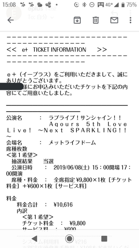 年度終わりの3月がつつがなくスタートしました。平成最後の3月とも言いますが・・・(w・【3度目の】ラブライブ!サンシャイン!!Aqours 5th LoveLive! ~Next SPARKLING!!~ Day.1当選【正直】ラブライブ!サンシャイン!!The School Idol Movie Over theRainbowの各CDに付属していた、先行抽選申込券を利用して何度か応募していたのですが、■「僕らの走ってきた道は・・・/Next SPARKLING!!」■「逃走迷走メビウスループ/Hop? Stop? Nonstop!」で応募していた分は外れてしまいCDでの先行抽選申込は■「Believe again/Brightest Melody/Over The Next Rainbow」を残すのみとなっていました。それの抽選結果発表が本日だったので、日中わりとソワソワしていたのですが上のスクリーンショットの通り無事当てることができました。4thのときは着席指定席を一般販売で買えましたが、5thはそういった縛りのない座席が先行で取れましたね・・・。前回の会場は東京ドームだったのでDay.1のみで日帰りでギリギリこなせましたが、今度の会場はメットライフドームと言うことで都心からはだいぶ離れており、現地まで車で行ったとしても日帰りでこなすのは困難そう・・・と言うことでそこまで頑張る必要もなかろう、と一泊して帰る予定です。後は現地近くのホテルを取るかですが、すでに仮押さえの人が多いみたいで現地近くはなかなか厳しいっぽく都内に戻る途中でどこか取るか、いっそ都内までがっつり戻って翌日の帰宅に備えて交通の便のよいところで取るかは追々考えます。とりあえず当選したので一安心です。