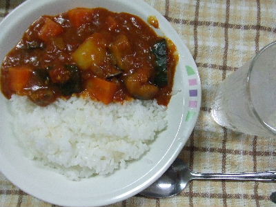 たっぷり野菜の健康カレーです^^カレーは野菜をたくさん摂取でき、カレー粉に含まれるスパイスが生活習慣病予防にも効果があると言われています今回カレールウの他に、クミンシード、ガラムマサラ(辛みスパイス)などを使用していますクミンシードは鎮痛、利尿、体外にガスを出す作用があり、腹痛、消化不良にも効果あると言われています。ガラムマサラは数種類のスパイスがブレンドされた辛みと香りのスパイス~~香りが食欲をそそります肉は使わず野菜たっぷりのカレーです。完熟トマトのホール缶を使いトマト風味のカレーになりました。 材料じゃが芋 2個玉ねぎ(みじん切り) 1個人参 1本茄子 2~3個カボチャ またはピーマン(カボチャの場合は1/3個ぐらいピーマンの場合は2~3個)ニンニク、生姜のすりおろし、各1かけトマトのホール缶(完熟)1缶コンソメスープ 2カップローリエ、クミンシード、ガラムマサラ、カレー粉(大匙2ぐらい)またはカレールウ(固形2かけぐらい) 1.鍋にサラダ油、ローリエ、クミンシード入れ弱火にかける。 2.香り立ってきたら、玉ねぎ加えしんなりするまで炒める。 3.人参、じゃが芋、カボチャの順に炒め、油が馴染んできたら茄子も炒め、コンソメスープ、トマトのホール缶も加え、野菜が柔らかくなるまで(15分ぐらい)煮込む。 4.いったん火を止めカレールウを入れ溶かし再び弱火で10~15分ぐらい煮込む。 途中、ニンニク、生姜すりおろし、ガラムマサラなどを加えるホール缶1個丸ごと入れているので、トマト味がかなり強いカレーなっています。好みでトマトの量を調整してください。 最近は色んなカレーを試作中です~~美味しく出来たらまた紹介しま~~す(笑)