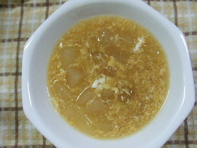 最近、忙しかったりでなかなか紹介出来なかったレシピを、どどーんと紹介します^^とろとろと冬瓜たまごスープ材料 冬瓜1/4ぐらい、卵1個 和風だしの素、醤油、片栗粉 各大匙1ぐらい 好みで砂糖少々 (だしの素は好み調整してください)1.1cm角に切った冬瓜をヒタヒタの水に透き通るぐらいまで煮る。 ここで、透き通るまで煮ると食べる時、冬瓜がとろとろ状態になります2.だしの素、醤油、砂糖など入れひと煮立ちさせて、たまごを回し入れ片栗粉でとろみつける。 キムチ炒飯&もやしとキムチのナムル風最近、よく作るキムチを使ったレシピ^^ 炒飯は卵、ハム(ベーコン)、ピーマンなどでご飯を炒めた後、きざんだキムチを加え塩、胡椒、香りづけに醤油を少々、仕上げレタスを加えます。(ちなみに溶き卵は最初にお米と絡めてから、お米と一緒に炒めます) ナムルは、タレ(醤油、酢、ゴマ油、すりごま、好みで砂糖少々)に茹でた豆もやしと刻んだキムチを混ぜるだけ~~最近、我が家のお気に入りレシピです!! 秋刀魚の南蛮漬け~~さっぱり頂けます^^南蛮酢タレ米酢大匙5、 醤油、砂糖各大匙11/2 、 ゴマ油小匙1、出し汁大匙2唐辛子1本(小口切り) 里芋の蒟蒻の煮物~~シンプルに里芋と蒟蒻を煮込んだだけ^^1.下処理(里芋は塩でぬめりをとり、蒟蒻は湯通し)した里芋と蒟蒻をサラダ油で軽く炒めます(コクを出すため)。2.次に出し汁、砂糖、酒、を加え煮立ったら落としぶたをして7~8分3.醤油を加え汁がなくなるくらいまで煮込みます。出し汁2カップに対し調味料の割合は、1:1:1(砂糖:酒:醤油)~~すべて同量にします(今回、それぞれ大匙2)味が染みこんでとろ~り煮込んだ里芋と蒟蒻の食感が美味!!
