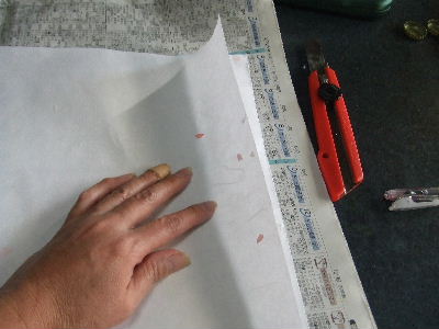先週の金曜日(27日)、この日はポカポカ小春日和だったので!!そうだ~~~障子張りをしようと、思い立ち・・・・・。今年は早めの障子張り~~破れても、汚れてもいないので毎年、張替えする必要はないのだけれど~~。なんか~~この時期に、コレをしないねっ(笑)去年はハーブでしたがが、今年は桜の花びらになりました^^最初に30cmの長さの障子紙を65cm幅にカットします。一面に貼れるのもあるのですが、私は30cm幅の使用、こちらの方がカラー模様の種類も多いし、何より、大きな障子紙だと、かなり紙が余りがでてしまって~~勿体無いから!! 水スプレーをして、障子紙を剥がす(簡単に剥がれます)。最近は、障子張り用の両面テープがあるんですねぇ~~試しに、今年初めて使いましたが・・・・・でも、のりの方が、早く貼れるような気がする!!キッチンが散らかってまーーすが!!見ないフリしてねっ(^m^) ふふ^^お部屋に桜が咲きましたよ~~。