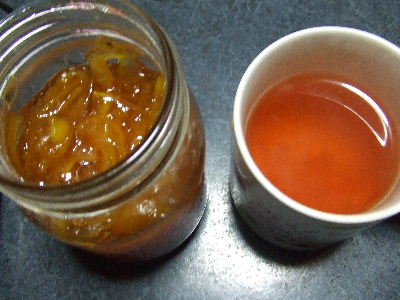 ゆずを頂いたので~~ゆずマーマレード(ゆずジャム)を作って、紅茶に^^ うふふ^^これはクセになるかも(^m^)今日みたいに、寒い日は体の中から温まって、心まで、ほっかほっかになりそうな気がします(^-^) 砂糖の代わりにザラメ使用(ゆずの40~50%ぐらい)煮ている間に、透きとおっていきますゆずは綺麗に洗って、水気を取ります。ゆずの絞り汁、ゆずの皮、ザラメを入れて、ゆずの皮が透きとおるぐらいまで^^ジャムは冷めると固まりやすいので、煮過ぎに注意!!(種をお茶パックに入れて一緒に煮ると、とろみがでるようでが、入れなくても大丈夫でした) ゆず皮の下準備ゆずの皮は、スライスして10分ぐらい水に冷やしたあと、2度ほど湯でこぼしたあと、ざるなどで水切りをしましたが、冷やしただけでも良いみたいです。他にスライスして、ひと晩水につけるやり方もあるようです!! 昨日は市の検診日でした、それにしても、昨日は寒かったです(^_^;)また、検診場所(公民館)が寒いのよーー><特定検診、胃のレントゲン(バリウム)、肺のレントゲンなど。大腸は検便を提出(お食事中の方ごめんなさい)。主人にも強制的に受けさせました。結果は、1ヵ月後~~。心配してた主人の血圧も上が133で、ひと安心^^朝だから低かったのかもしれませんが、目の手術後は少し高めで心配していましたが落ちついてきたようです!!心配で、血圧計まで買ってしまって~~うちで計るといつも130ぐらいなのですが、正常値なのか心配でしたが、どうやら大丈夫みたい!!うふふ~~私の体重48,5(身長153cm)~~1キロ減でしたよーーたかが1キロですが(笑)されど1キロ、40キロ台キープです^^~~この数年、増えつつあった体重もストップかかったかな^^主人は、メタボですが(^_^;)