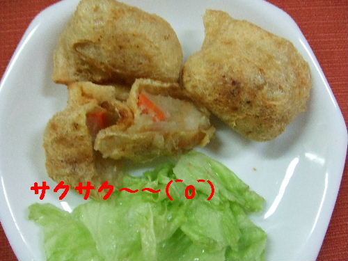 油揚げがお菓子ようにサクサク~~そして、甘めのじゃが芋の具が、どこか懐かしさを感じさせてくれる味です^^料理サイトで見つけた、ごさごささんのレシピを参考にして作ってみました。 作り方1.じゃが芋(3個)は一口大に、人参(1/3ぐらい)はいちょう切りか半月に、玉ねぎ(1/2)は薄切りして、全部一緒に茹でる。 2.野菜が柔らくなったら、水切りして乾煎りしてつぶす、調味料を加える。調味料 砂糖、醤油、各大匙1ぐらい。塩、胡椒少々。 3.油揚げを半分にして、裏返しにして、具を詰める。 裏返す時、破けないよう注意しましょう(^_^;) 4.少なめの油で、両面カリカリに揚げます^^ お好みで醤油を少々たらして~~召し上がれ(^m^) カリカリ油揚げに、甘めの具が、ゼッタイ美味しいよ~~お子様にもおススメ^^ 今日はいいお天気~~お掃除日和^^ 流し台の下のお掃除をしました!!中のお鍋や、フライパンなどを全部出して、棚も解体してお掃除。うふふ^^シートも取り替えて気持ちよいです。 ところが・・・・・こんな時に、来るんですねぇ~~~不意の訪問者が(^_^;)「こんにちわ、ガスと湯沸かし器の点検です」わっわっ~~~どうしよう(あせる)あのう、いま、ものすごくーー。 散らかっているんですけどぉーーー(>_<)「大丈夫ですよ」とガス屋さん~~いえいえ!!私が困るぅぅ。。。・・・・・・結局、物凄く、散らかってるなか点検は行われ、ガスメータはピカピカの新品に代わっていました。ガスも異常なしでメータも新品になって、とっても安心なんだけどぉ~~。あーーあ、申し訳なかったなぁ~~