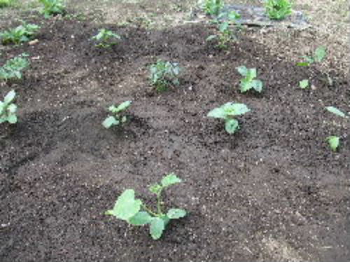 連日の晴天で^^夏野菜の苗植えが完了です。 今年は色んな野菜を少しずつです。ピーマン&タカノツメ トマト&きゅうり バジル&青ジソコンパニオンプランツ=一緒に植えると互いが元気に育って、病害虫の抵抗力をもつ組み合わせ。相性はトマトにはシソやバジル、ナスにはニラなど、シソとトマトはそれぞれの香りで互いの害虫を防ぎあう。バジルもトマトと相性がよい、バジル単独だと青虫の食害にあうがトマトが一緒だと被害が少なくなるようです。その他にもお互いが出す老廃物を分解しあい、それを養分として利用する力も生まれるとか、肥料もその分少なくてすむ~~~とすべて本に書いてありましたぁ~(笑)ちなみに、パセリはどんな植物との相性もよく病害虫を防ぐのに効果アリだとか!! サヤエンドウ&スナップエンドウ、ナス 4月の始めに植えた、じゃが芋の発芽^^テントウムシにそっくりな、草食性のテントウムシシダムシ(葉っぱ食べる害虫)がついていたので捕殺!! キュウリの発芽^^ウリ科の種は、とても可愛い~~~キュウリは苗も購入しましたが~~種蒔きにも挑戦!!10日前にポット蒔きしたキュウリがーー発芽しました^^種から育てるのは難しいかな??~と思っていましたが、この暖かさで発芽したみたい!(^^)!これからも、元気に育てよ~~~^^ 小松菜です1週間ぐらいで、こんな感じです^^今年こそ~~めざせ野菜の自由自足生活(笑)