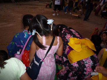 またまたブログ、ノロノロ更新しています7月12日(土曜)午前中は半年振りに娘と美容院へ。伸びかけてうっとおしかったので、すっきり午後4時からは、小学校の校庭で盆踊り大会です。マンションで仲良しのWちゃんママが役員でお手伝いだったので、私がWちゃんを預かりました。去年は私が役員だったので、Wちゃんママに娘を預けたので、お互い様です。家を出ようとしたら、午前中はすごくいい天気だったのに、どんよりしてきたので折り畳み傘を二本バッグに入れて出発。入場待ちの時には雷がゴロゴロ・・・たこ焼きを買おうと並んでいたらポツポツと降り始めました。しばらくするとやんだのですが、2度目の雨は傘がぐっしょりするくらい濡れる位降りました。雨が上がると、娘たちは輪投げや魚釣りのゲームにはまっちゃって・・・私は先に食べ物をGETして、荷物持ち・・・そうそう・・・娘は先日落札した赤い浴衣ではなく、幼稚園の時に私が手作りしたピンクの浴衣を着ていきました。上着が脱げるので涼しいみたい。髪飾りは100円ショップでブルーのお花を買いましたが、ちょっと寂しいので、白いビーズを付けてみました。2年前に完成した時のブログ6時からは6年生がやぐらの上で太鼓を叩き、ドラえもん音頭などを周りで踊り7時15分からは花火大会7時半、盆踊り終了。ずっと立ちっぱなしだったし、雨にも打たれてちょっと大変だったけど楽しかったです。去年は台風で大変だったので7月13日(日曜)学校から持ち帰ったミニトマト。この日までに27個も収穫したそうです。でもトマト嫌いの娘&主人ほとんど私の胃袋におさまっています。まだまだ実りそうですね。去年はこの青い鉢に朝顔を植えていました。その時収穫した朝顔の種はプランターにまき、初めて開花しました。最近、うれしかったこと主人にデジカメを買ってもらいましたLUMIX DMC-FX35-S / プレシャスシルバー我が家にあるのは望遠レンズがあるので、持ち運びにかさばって嫌だったんです。ズームを使う時には今までのカメラ、普段使いには新しいカメラと使い分けます。ボーナス万歳!パパ、ありがとう娘は「進研ゼミ」を申し込みました。こどもチャレンジは6年間購読していたのですが、「コラショはやらない」と言ってたのに今頃になって最近勉強もだらけているので、少し身につくといいなぁ。さて、夏休みは7月19日から始まります。我が家は4年ぶりに私の実家への帰省をすることにしました娘は前回帰ったのが3歳だったのでもう記憶にないんです私の父には去年、妹の結婚式で上京して会ったのですが、母や祖母たちに会えるのがとても楽しみです。ちょうど妹家族も同時期の夏休みが取れたので、実家で大集合!私の実家は鹿児島なのですが、7月22日~31日まで行ってきます。出発は娘と二人で行き、主人は27日に合流して、帰りは3人で戻ります。パソコンのできる環境がないので、携帯で更新できるといいなぁと思います。帰省準備やら、小学校の方は明日、懇談会もあるので、またパソコンの時間が取れなさそうです。8月に入ったらまた、通常に戻れるといいなぁと思っています。ではでは