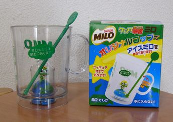 またまたミロの大袋にケロロのおまけが付いています発売を知ったのは、某オークションにこのコップが出ていたからでした。始めは落札しようと入札していたら、火曜日にジャ○コで見つけて買いました。オークションの方は、私の最高入札額より入札した方がいたので、再入札せずにそちらの方へ。また娘が張り切ってミロを飲むことでしょう。あわせて背も伸びると良いな!