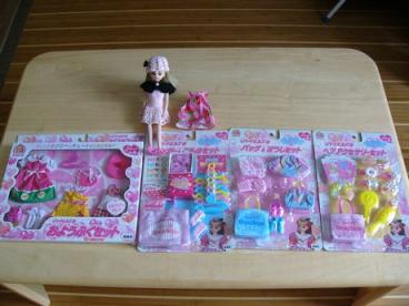先日、茶系ちゃんに手編みのリカちゃん服をいただいたので、 色々欲しくなっちゃって、ぽちってしまいました。送料(400円)を入れても全部で1900円くらいのお買い物です。数年前の商品なので、お安く手にはいりました掘り出し品が見つかるかも…おもちゃのベルハウス娘にはまだ見せていないんだけど、きっと喜んでくれるね!そして、オクで落札したもの 土曜日に、小学校で盆踊りがあるので、新品浴衣(120センチ)を買いました。作ろうかなって思ってたけど、なかなか気に入った生地もなかったので。写真にはありませんが、赤い鼻緒のぞうり(ポリ製)は先日、幼稚園バザーで新品50円でGET!帯は黄色っぽいのが欲しかったけど、赤でもいいや~ちょっとあげをした方がいいかな?まだ娘は115センチとオチビなので、120センチサイズでぴったりでした。(130にしようか迷っていたの)娘が欲しがったビート板!友達に話したら「欲しい」と言うので、全部で4枚買いました。みんな、泳げるようになるといいね水着は新品140センチサイズ。もちろん娘用です。浴衣は120なのにね^^;水着は太ももが大きいので、スクール水着は130センチで「ちょっときついかも」位らしく、普段使い用は140にしてみました。ちょっと大人っぽい柄だけど、気に入ったようです。他には私は手作りキットを落札。先日のバラのクロスのキットとか、クロスステッチが主です。オークション、やばすぎですね~はまっちゃいます。まだ新品の商品を落札しかした事がないし、お相手もいい方ばかりでスムーズにお取引ができています。出品もしてみたいけど、まだ怖いのでもう少し勉強してからにします。