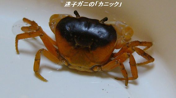 7月3日に保護した、サワガニの「カニック」ですが、 この写真をマンションの掲示板に貼った所、飼い主が見つかりました。保護した部屋は「205号室」で、飼い主は「309号室」どうやって降りてきたのでしょう?たまたま、カニックの飼い主さんは違う小学校へ行ってる娘と同じ2年生の女の子のお宅で、買い物へ行ったら食用の「サワガニ」が1匹50円で売られており、そのお店の人も「これは飼えるんですよ」と言ったそうで、かわいいのでオスメス1匹づつ飼って、ベランダにプラスチック容器を置いて入れておいたそうですが、ふたがなかったので二匹とも逃げて、そのうち1匹が「カニック」だったそうです。買う気になっていた娘には悪いのですが、その子も大切に育てていたのですんなり返してあげましたひとつ謎が解けて良かったわ。下にも写真が三枚ありますが、カエルもあるので、見たい方だけどうぞ!そして今日は、ザリガニ1匹、ひとつ下の男の子へ里子に出しました。写真のザリガニは、娘が取ってきたものでうちにいますが、先週幼稚園のバザーでもらってきたもっと大きいのをあげました。3日の夜に羽化しかけていたハグロトンボのやごは、頭はトンボになって出ていたけど、体の殻が脱げなかったのか、そのまま木の枝にくっついて動かなくなってしまっています 写真は先月学校プールで取ってきたヤゴが我が家で羽化して、ノシメトンボになり放してあげる前の写真です。おたまじゃくしは1匹、尻尾が付いているカエルになり、跳ねています。
