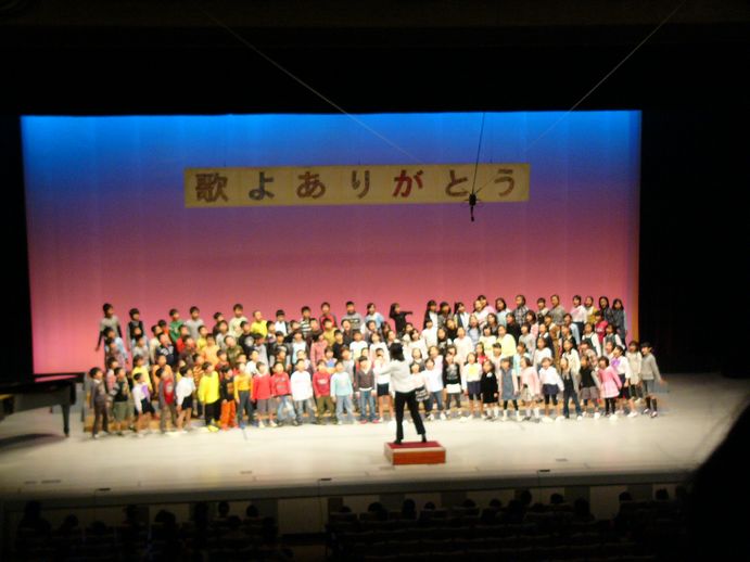 今週、11月10日(月)~14(金)は、小学校のオープンスクール(公開授業参観)です。2日目は「音楽(歌よありがとう)集会」近くの市民会館を借りて行われました運動会が終わってから毎日練習して、家でも毎日歌っているので、私も歌を覚えてしまったのですが、やっぱり2年生全員(約140人位)で声を合わせて歌うと、きれいな歌声に感動しました今回2年生は「ドレミの歌」「友達っていいな」の二曲でした。「友達っていいな」の歌詞の「おじいちゃんになっても遊ぼうね おばあちゃんになっても仲良くね」って言うのがなんだかほのぼのとして良かったわ。ここは男女掛け合いのように歌います。娘は「とっても緊張したけれど、ちゃんと歌えて良かったよ~」と話してくれました。来年(3年生)はリコーダー演奏があるのでまた楽しみです。入学説明会で教頭先生が「この小学校は毎日歌っているのが特徴です」と言われたとおり、毎月の歌が決まっていて歌っています。みんな歌が上手だし、好きになるのね楽しい集会を見せてくれて本当にありがとう