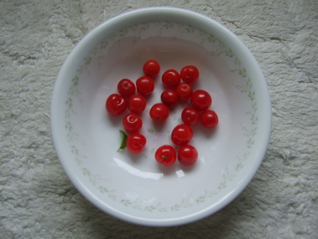 子供の頃、近所の人が庭で採れた実を今頃になると届けてくれました。 果物なんてそんなになかった頃、かごいっぱいの赤い実がとってもうれしかった気がします。 あの頃は(グミ)とよんでいたけど、ゆすらうめという名前みたいです。 今年も、小さな枝からこれだけ取れました。 娘さんは一粒食べて「すっぱい」と言い、自分の部屋に行ってしまいました。 懐かしい味です。 パパの誕生日に娘さんがケーキを買ってきてくれました。 いつもありがとう