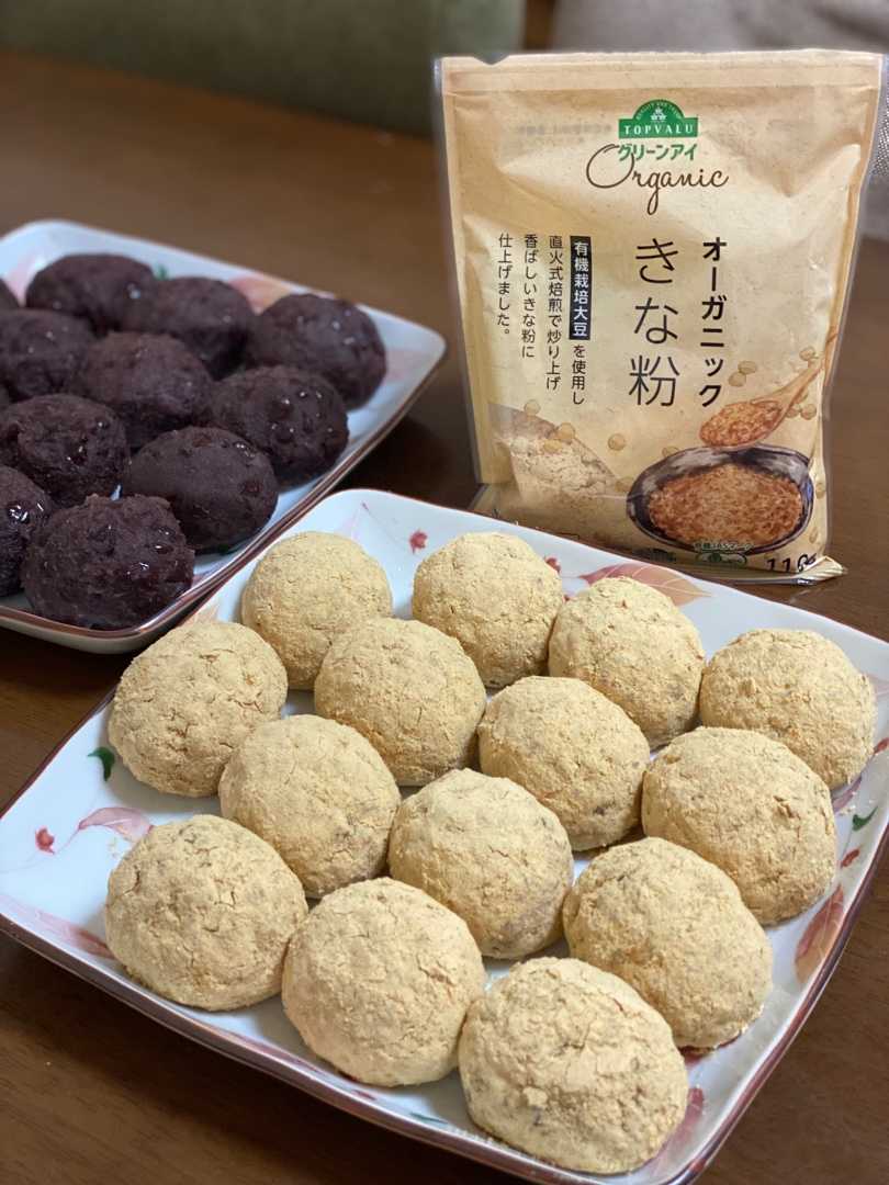 こんにちは😁にゃももんです✨✨ 先日イオンで購入したオーガニックきなこを使用しておはぎを作りました✨✨ とってもうまくできました😍