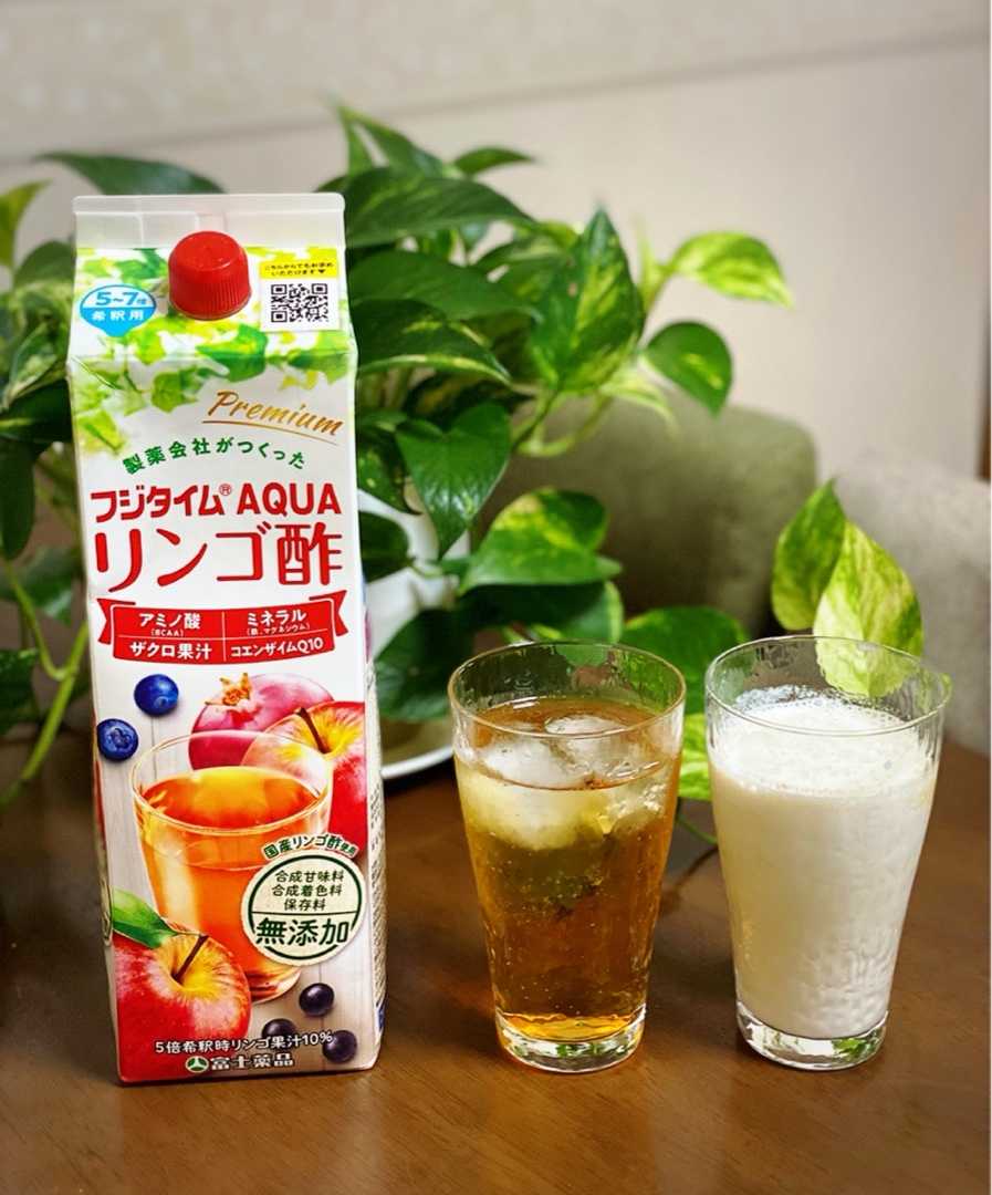 こんばんは☺️にゃももんです✨✨ 今日はこちらのりんご酢をご紹介します❣️ こちらは置き薬の富士薬品さんの商品なんですけど 最初はとくに期待せず購入したんです😅 付き合いでw 疲れた体にお酢がいいのは知っていました😁 でもお酢っていがいと自然に取り入れるとか難しいと聞いて しかもこれよく見たらアミノ酸、ミネラル、ザクロ果汁、コエンザイムQ10、鉄分、ビタミン類、カルシウムなどなど😁 しかも国産りんご酢使用、合成甘味料、合成着色料、保存料、無添加なの💕💕💕 1800ℓも入って希釈タイプだからスーパーに売ってうるりんご酢よりずっと栄養素高い上にお得❗️ うちは炭酸割りと牛乳割りにしています💖 無くなったら家族からブーイング👎がくるくらいハマってまして😅 わたしも職場に水筒に入れて持参していますよ💖 ぜひ一度試してみてください❣️疲れの取れ方が違います❣️ コロナやインフルエンザなどの感染症予防にも健康な体でいたいですよね❣️ 無添加りんご酢❗️これしか無理❗️